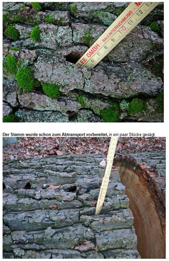 Statt die Fällung des ca. 160 Jahre alten Habitatbaumes zu bedauern, verteidigt das Forstamt auch noch diese Vernichtungsaktion!