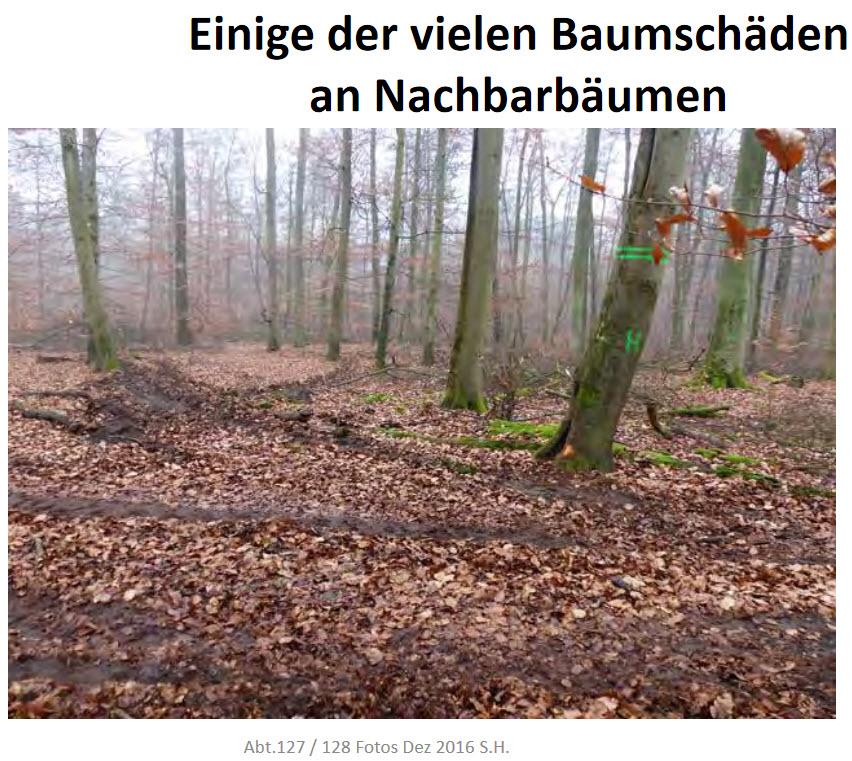 Ende 2016 wurde im gesunden FFH Buchenwald nicht nur viel zu viel eingeschlagen und schädlich aufgelichtet, sondern ein enorm hoher Kollateralschaden an Nachbarsbäumen angerichtet.