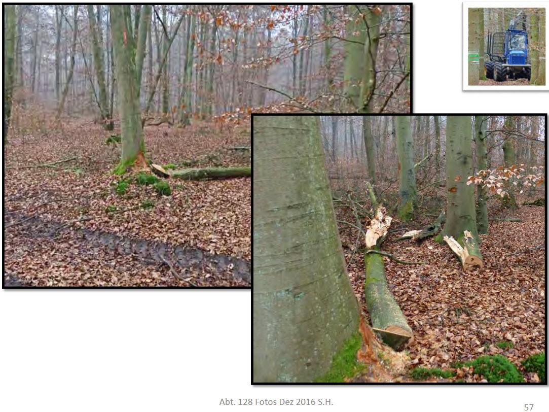 So beschädigte man nicht nur ein FFH Schutzgebiet mit wertvollem gesunden Buchenbestand, sondern richtete auch noch großen wirtschaftlichen Schaden im (FSC-zertifizierten) Staatswald an. FSC hat aber beim Audit 2017 auch das durchgewunken, Persilschein ausgestellt.