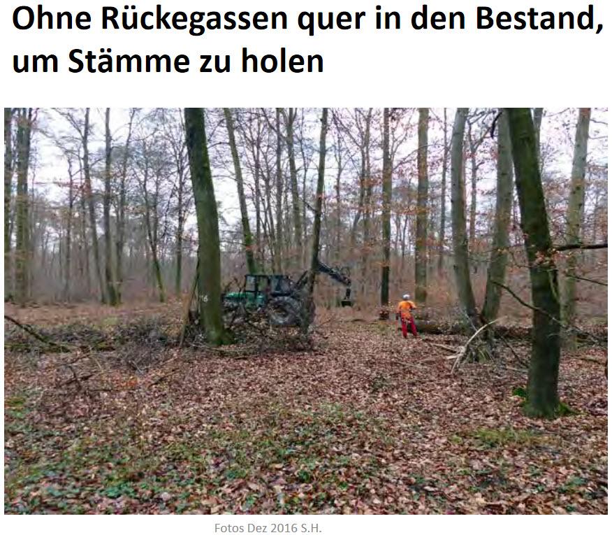 Passiert häufig im Natura 2000 VSG und FFH Wald, dass einfach quer in den Bestand gefahren wird, um gefällte Baumstämme zu holen.