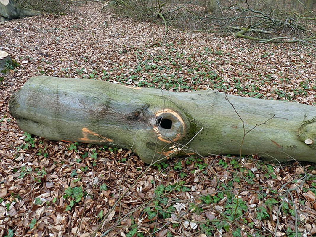 Viele der rücksichtslos eingeschlagenen Altbuchen wiesen leicht zu erkennende, ganz wertvolle Höhlen für hiesige geschützte Tierarten auf.