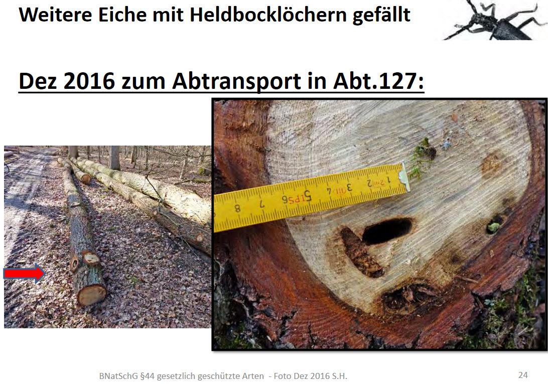 Ende 2016 wurden nicht nur in FFH Abt.128 viele wertvolle Höhlenbäume gefällt sondern auch in FFH Abt.127.