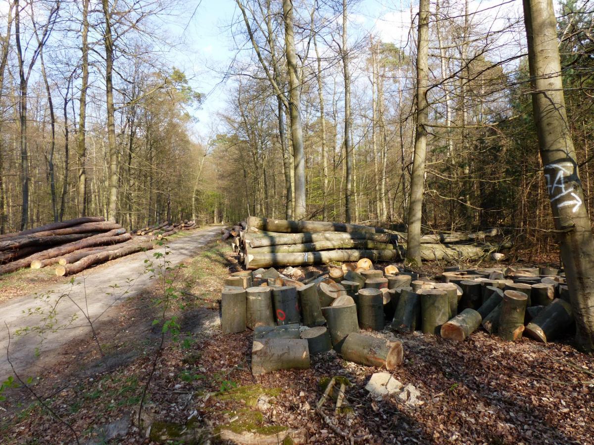 Hauptsächlich zu Buchenbrennholz wurden die vielen gesunden Buchen dort eingeschlagen. FFH Buchen zur klimaschädlichsten Verbrennung gefällt.