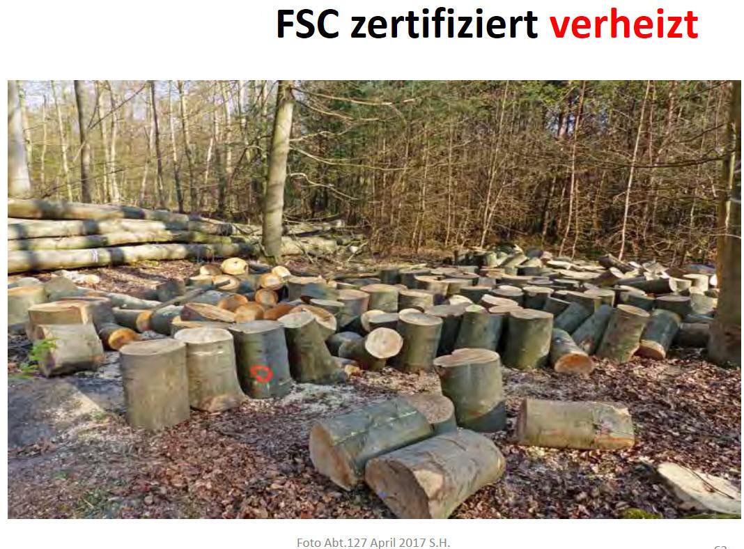 Wurde aber als guter Hessen-Forst FSC-Kunde vom FSC Zertifizierer alles als angebliche "Ausnahme von der Regel" toleriert. Dabei ist das die Regel hier in der Region. FSC-Stakeholder konnten ehrenamtlich logischerweise nur ein Beispielsgebiet fürs Audit mit diversen regelmäßigen Forstwirtschafts-Verstößen gegen FSC Standards dokumentieren.
