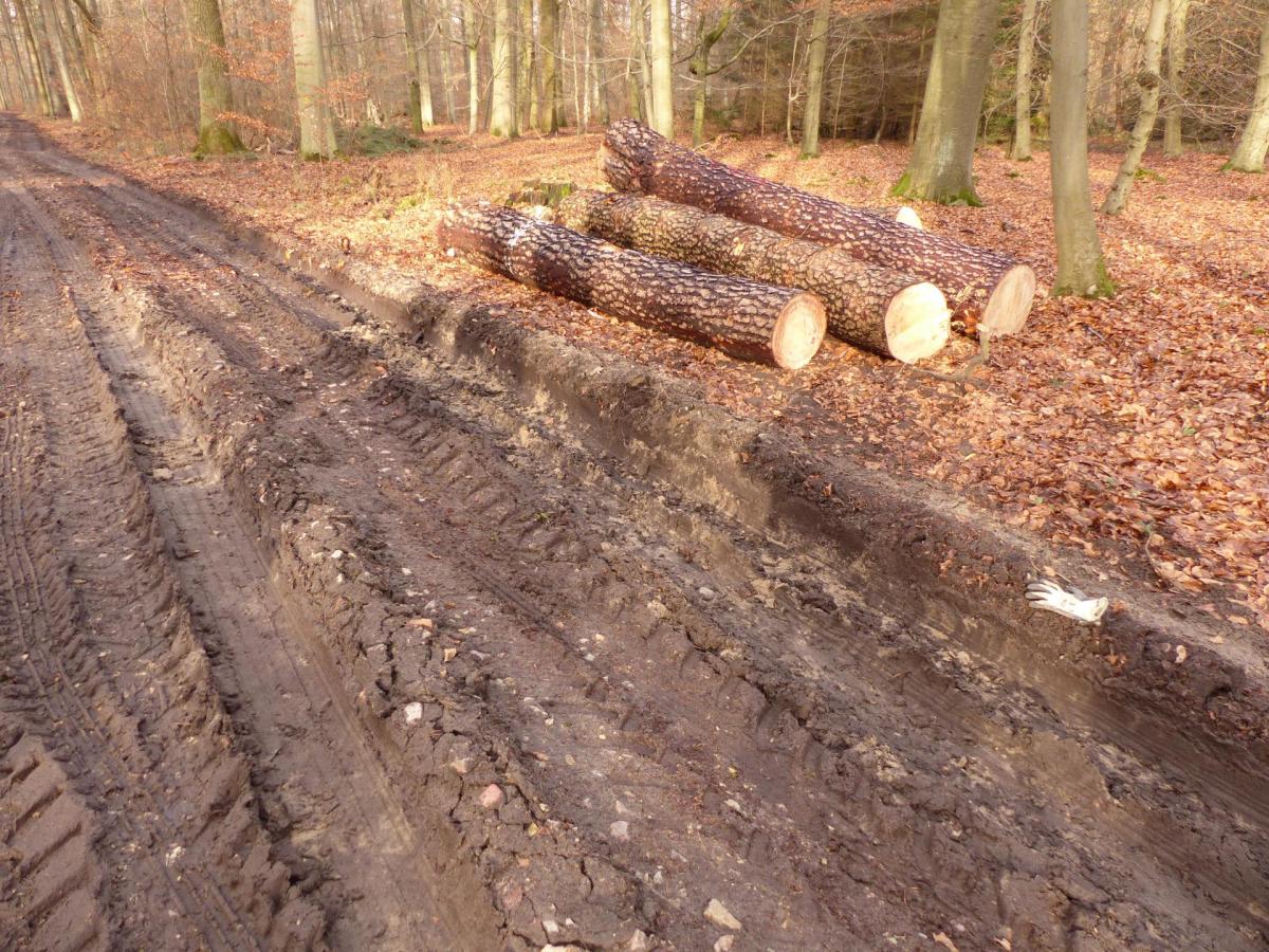 Zudem wurden die Harvesterarbeiten schon wieder bei ungünstigster nasser Witterung durchgeführt, siehe Wegeschäden Fotos unten.