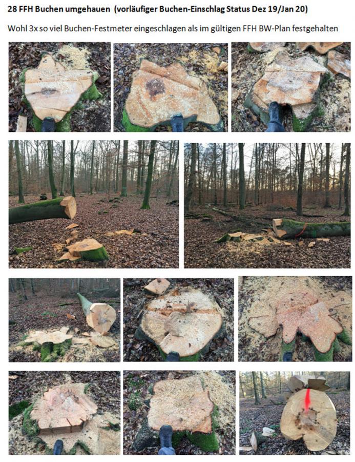 Im Dezember und Januar wurden dort 28 Altbuchen und 1 Alteiche radikal gefällt, darunter auch wertvolle Biotopbbäume mit Höhlen etc.