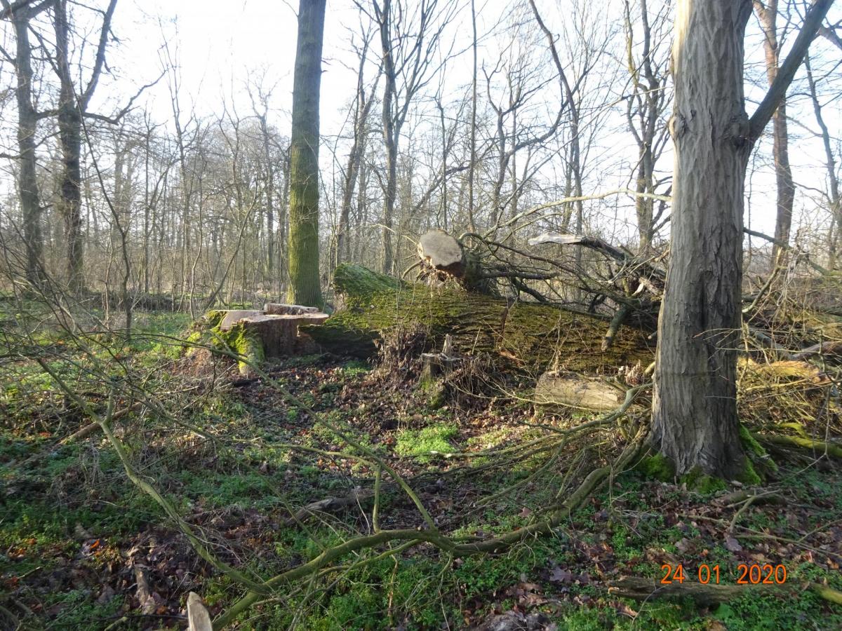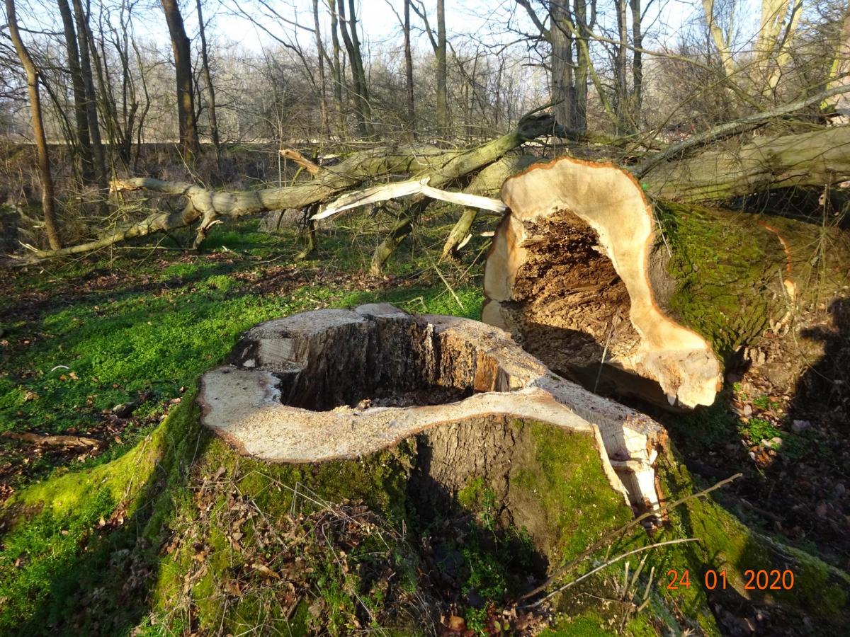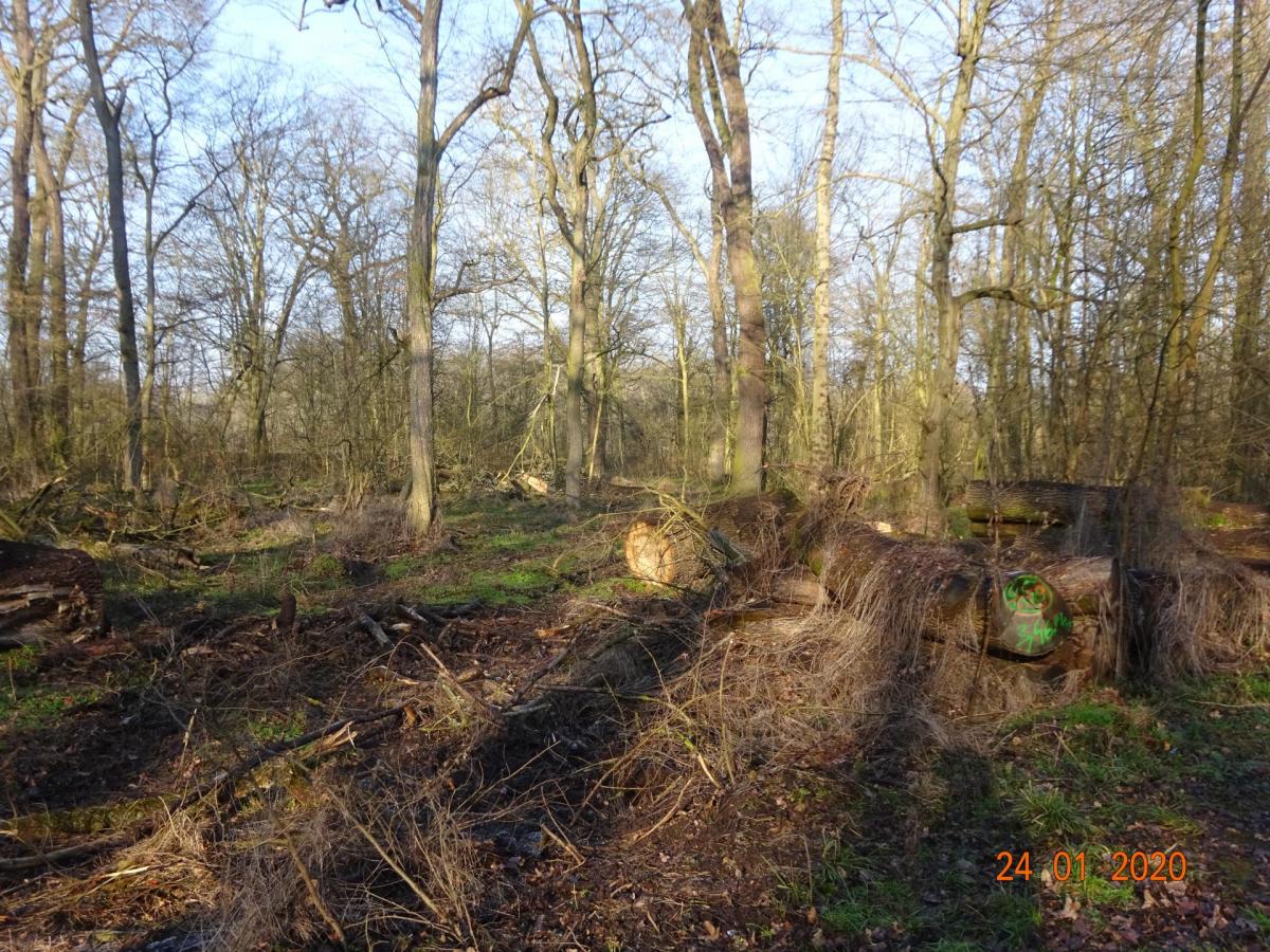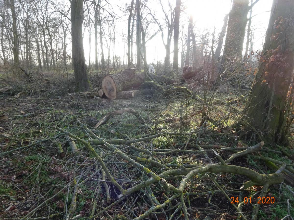 Abholzung nahezu aller großen Eichen in einem kleinen Wald am Elbe-Radweg zwischen Dessau und Wörlitz