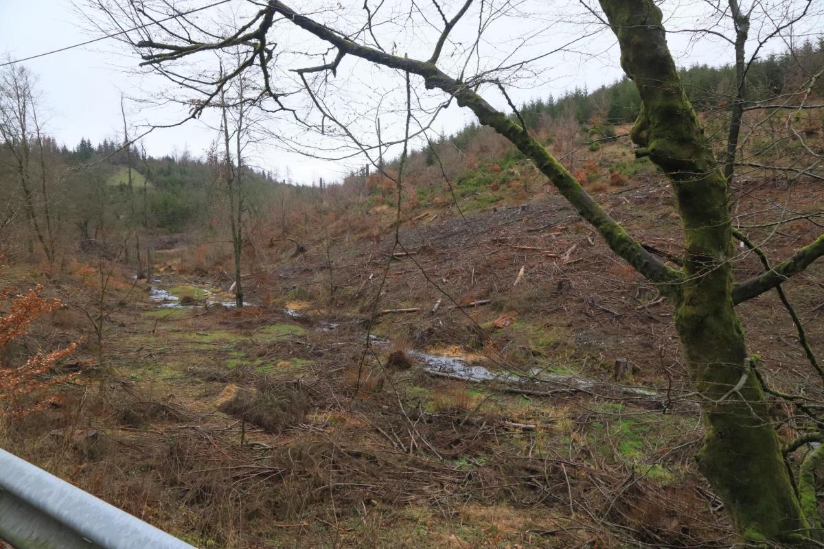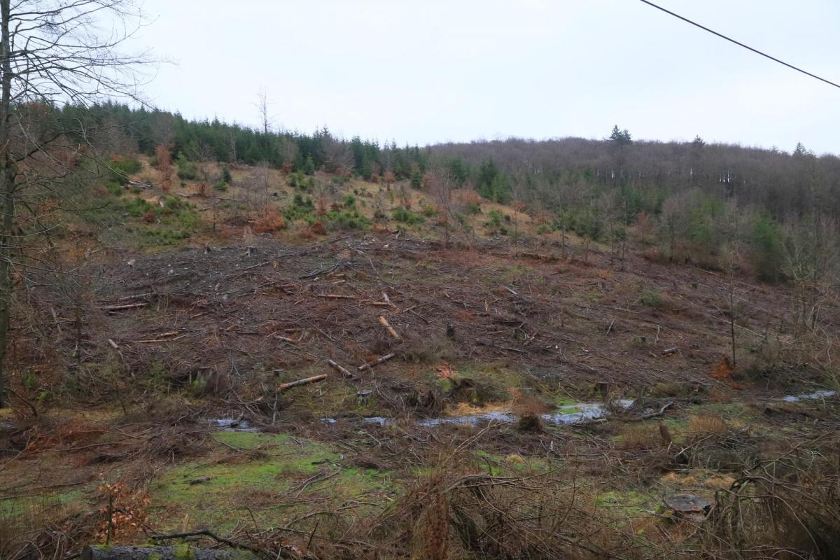 Auf einer Hangfläche von ca. 1,75 ha erfolgte eine ältere und eine neuere Baumfällung.