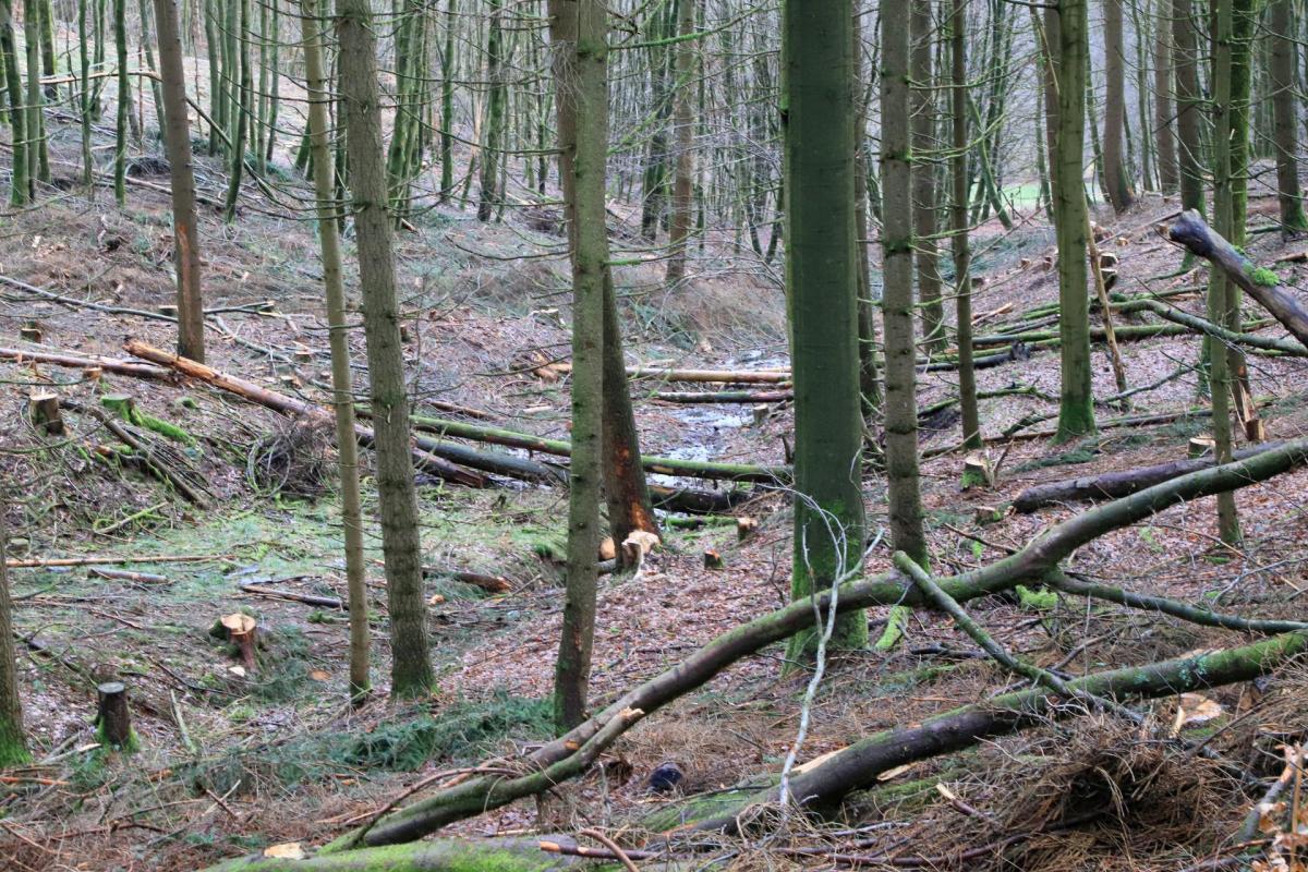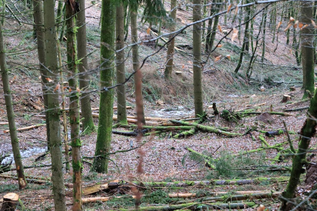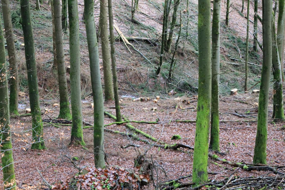 Ein Biotop §30 ist (höchstwahrscheinlich) von Fällarbeiten betroffen. Auf der unmittelbar angrenzenden Fläche wurden Nadelbäume gefällt. Das Biotop liegt am Wanderweg A1 zwischen "In der Weidetal" und "Vorm Hainrot".
