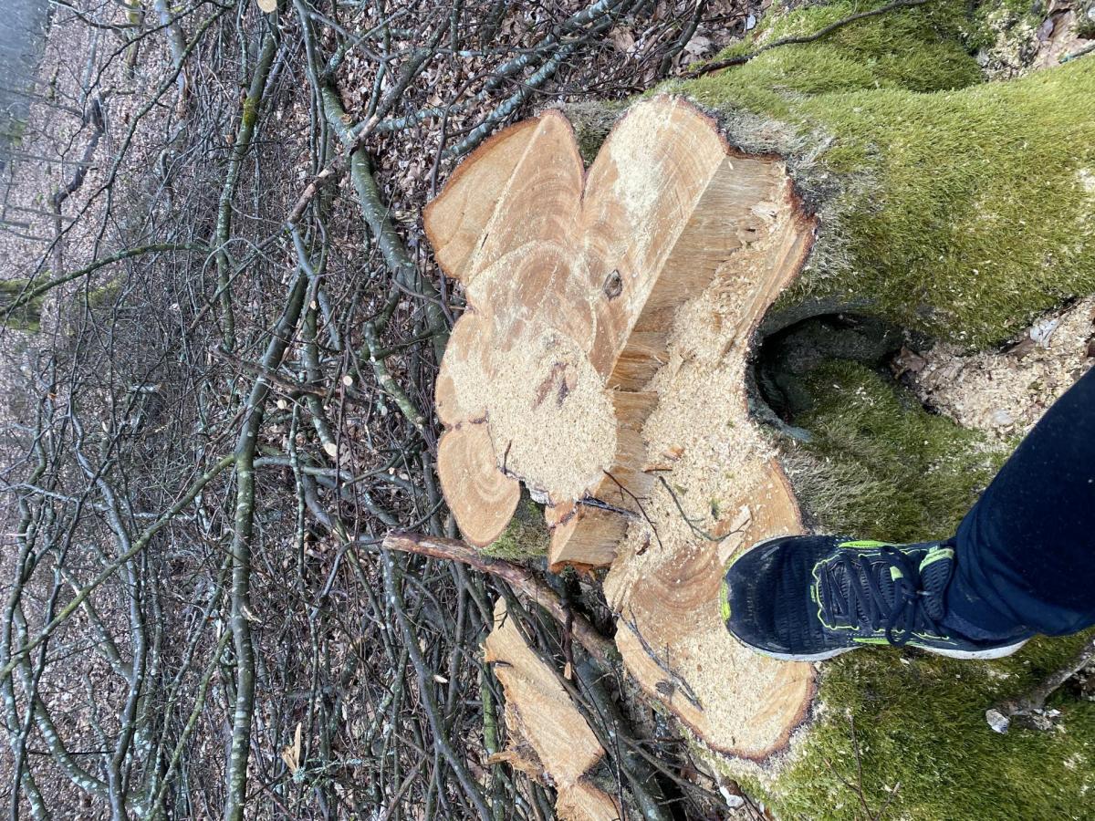 In seit circa 50 Jahren unberührtem Kommunalwald wurde mit Harvestern Brennholz geerntet.