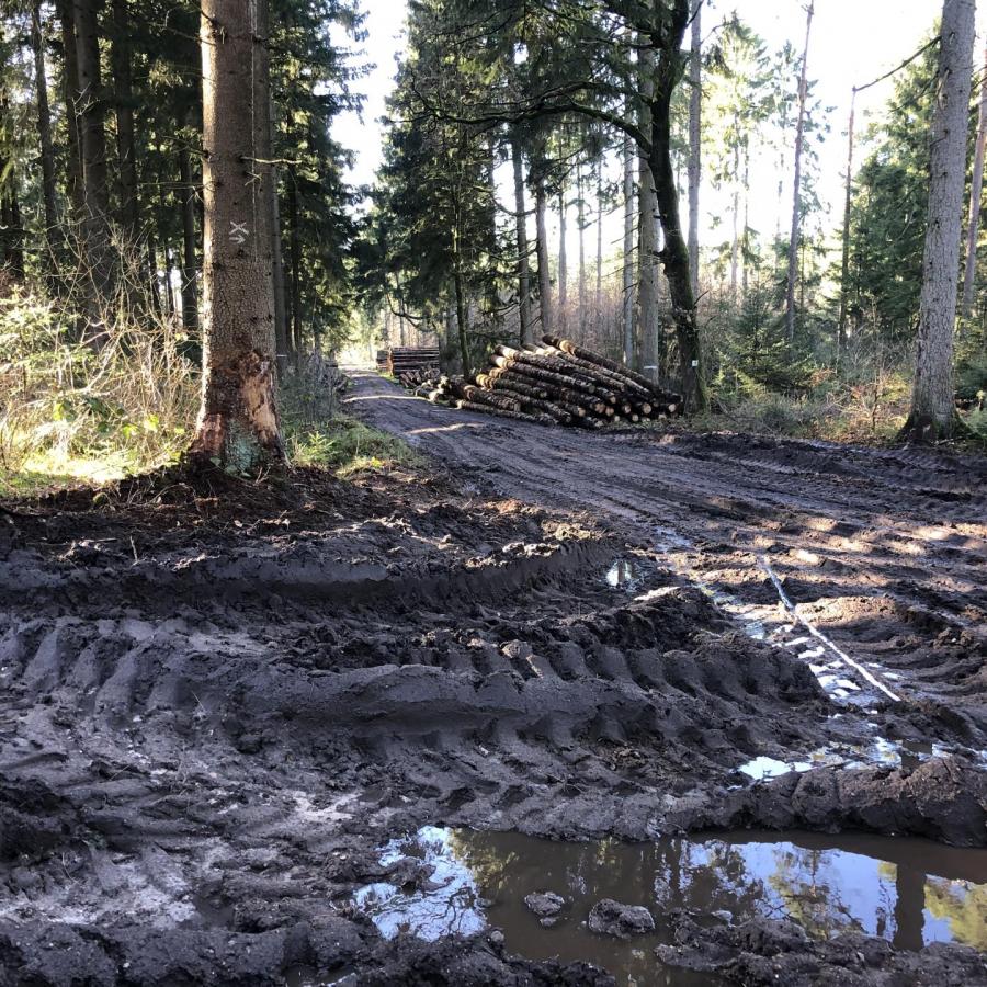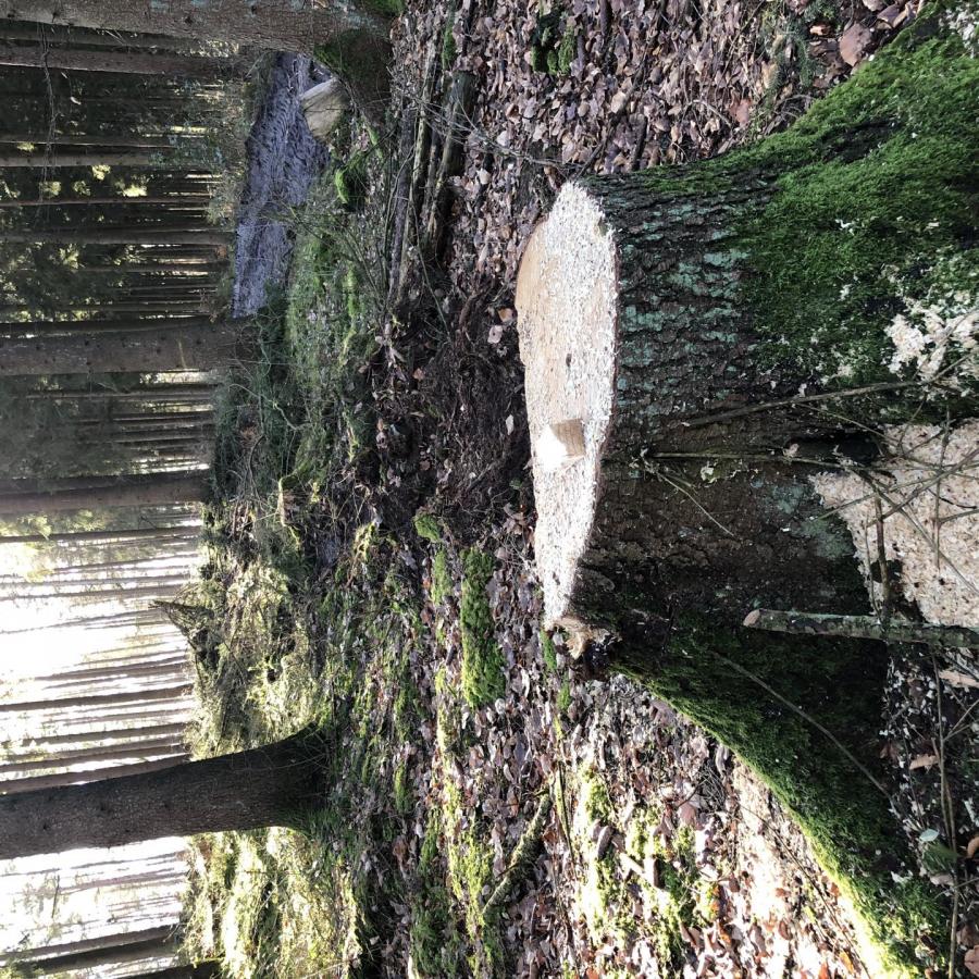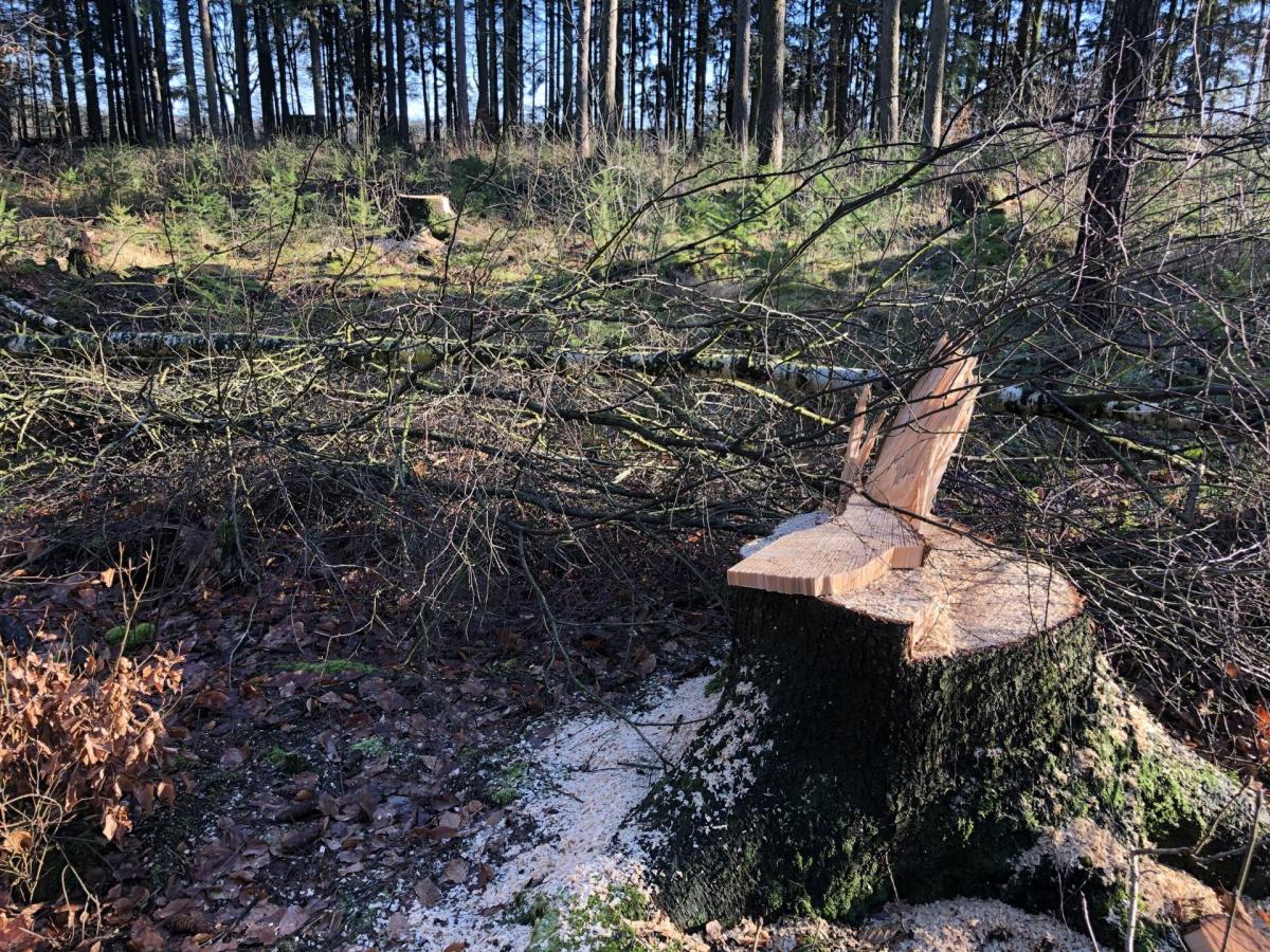 Der Stuvenwald ist Landschaftsschutzgebiet. Ich kann leider nichts über Besitz oder Verpachtung sagen. Es ist ein eigentlich sehr gesunder Mischwald geworden, Anteile sind noch Fichten Monokultur, aber überall wachsen neue Buchen und Eichen. Ein großer Teil des Waldes besteht auch aus alten Laubbäumen. Hier wurden vor kurzem mehrere große Buchen/Eichen geschlagen und sofort entfernt. Es gab eine andere Waldfläche mit Fichten und Borkenkäferbefall in der Nähe. Aber nicht an dieser Stelle. Ein Holz-oder Fraß-Schaden oder morsches Holz war am Stumpf nicht zu erkennen, Holz und Rinde sahen sehr gut aus. Ein gesunder Mischwald im Landschaftsschutzgebiet wird durch Einschlag hier massiv geschädigt.