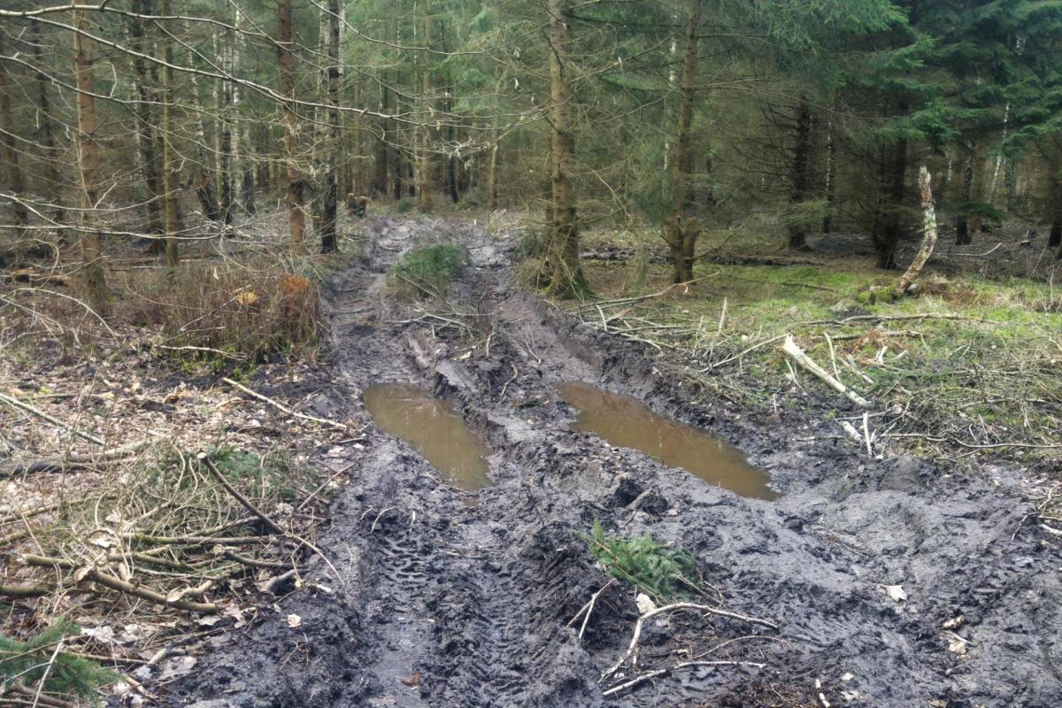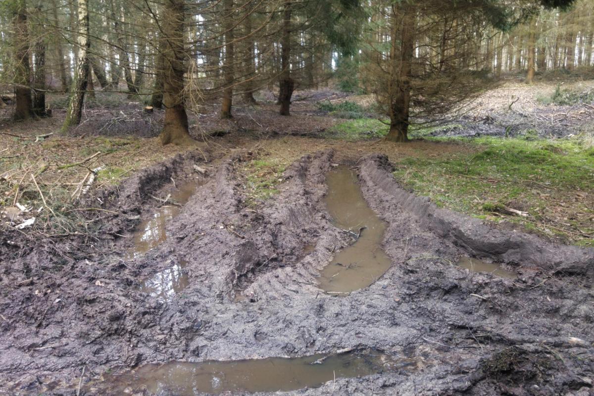 Erhebliche Schäden gibt es aber vor allem in den Senken: Dort haben sich die Räder zum Teil über 50 cm in den Boden eingegraben. In den Löchern steht das Wasser. An einigen nassen Stellen fand eine zusätzliche, unnötige Befahrung statt.