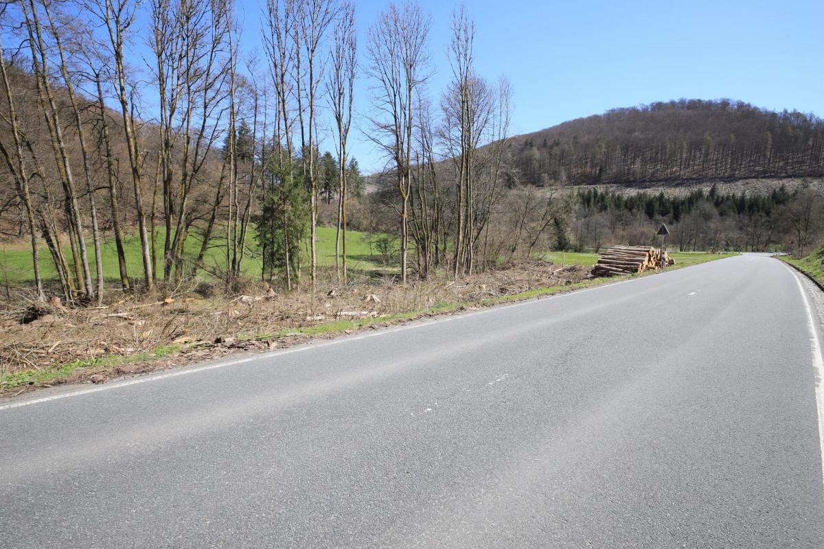 Kahlschlag direkt an der L718 nördlich von Bad Laasphe in dreifachem Schutzgebiet