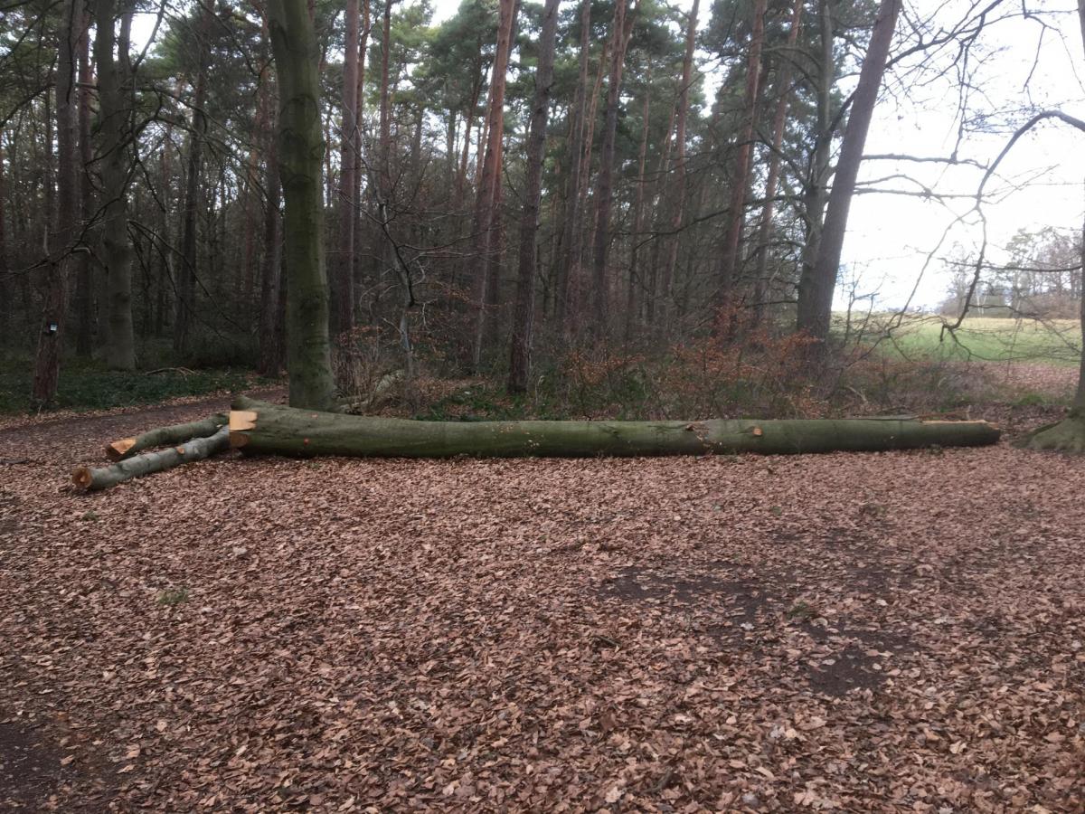 Im Mechernicher Wald rund um den Altusknipp wurden vor Kurzem zahlreiche Buchen und Eichen eingeschlagen. Es handelt sich auch um zum Teil noch sehr junge Bäume (Stammdurchmesser ca. 25 cm). Sämtliche Wege sind gesäumt von den gefällten Stämmen. Zudem finden sich überall Fahrspuren der Erntemaschinen sowie neue Rückegassen.