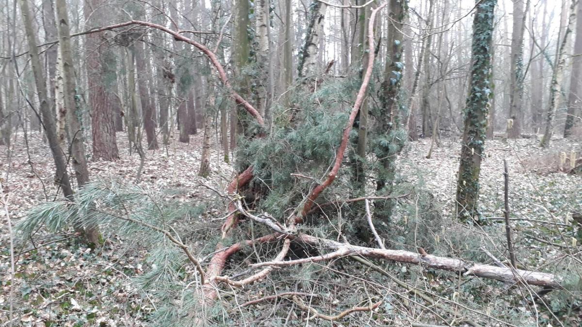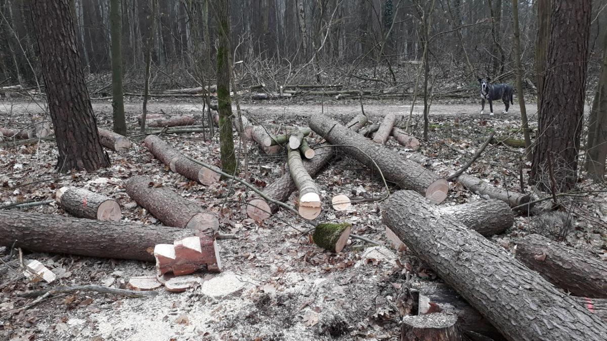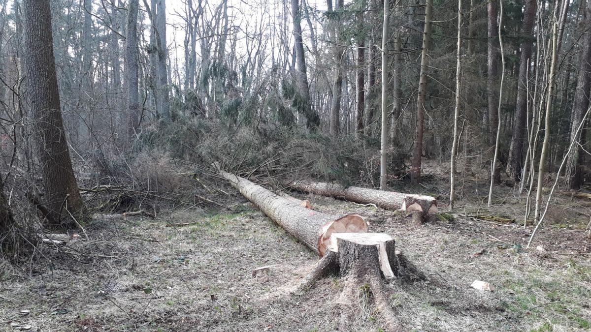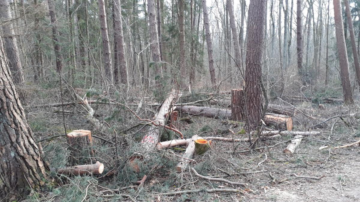 Im Zuge von Wegesicherungsmaßnahmen wurden auch standfeste Bäume mit zum Teil noch grünen Kronen in der ersten Märzwoche (Vogelbrutzeit)