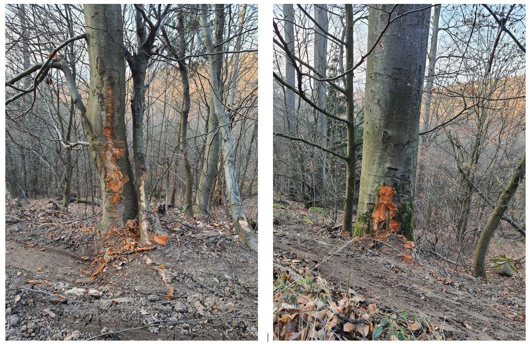 Hohe Schäden wurden auch hier verursacht. Die Bäume links und rechts des Weges haben Rindenschäden