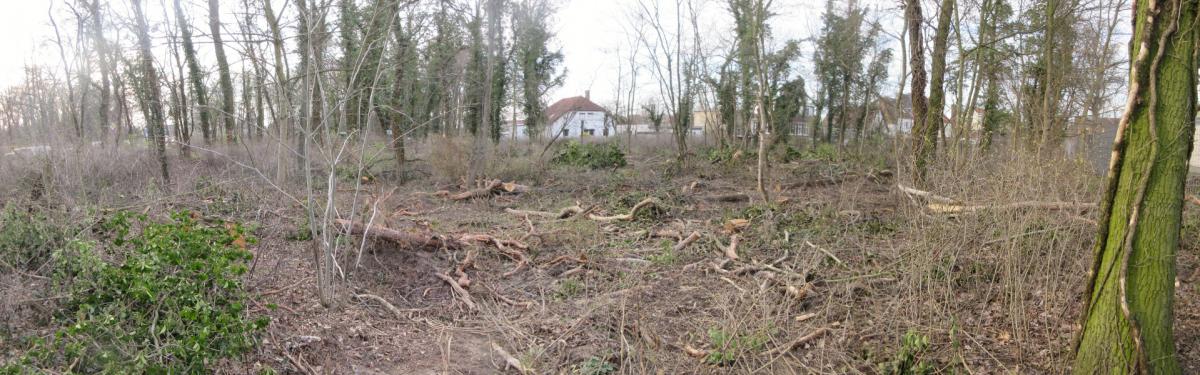 Die "Ergebnisse" sind nur z.T. auf den Fotos erkennbar. Große Holzstapel standen zum Dokumentationszeitpunkt am 16.03.2020 v.a. im Bereich der Jugendherberge.