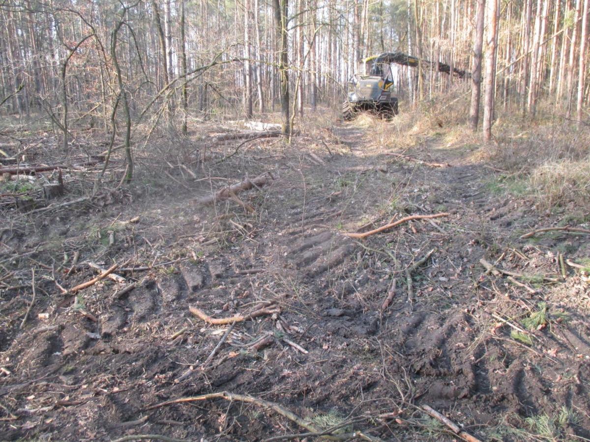 Der "Eselsforth", ein gesunder Kiefernforst in der "Reifephase" (entspr. FLL) wird derzeit mit einem Harvester (Gewicht mit Baumstamm ca. 30t) für größte Forsten intensiv geschädigt /zerstört. Bis 28.03.20 ca. die Hälfte des Bestandes.