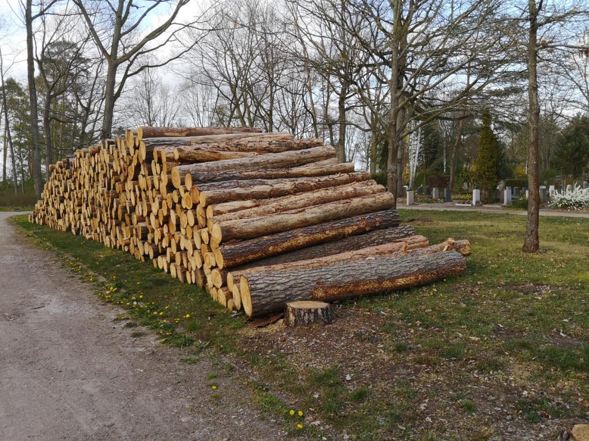 Die "Ergebnisse" sind nur z.T. auf den Fotos erkennbar, auch die Besucher sind entsetzt. Die Holzstapel stehen auch auf den Wiesen, direkt neben den Gräbern - und das bereits seit Wochen.