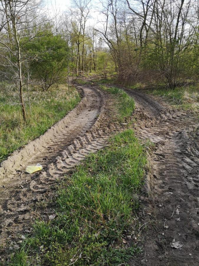- Fahrgassen auf den empfindlichen Waldböden, Spuren, schwere Bodenschäden