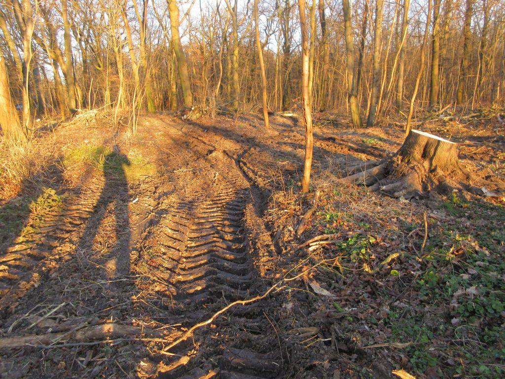 Bei der Dokumentation vor Ort am 09.03.2022 wurden diese Abholzungen mit vollständiger Entnahme der Stämme und des Kronenholzes festgestellt. Weiterhin Fahrspuren, schwere Bodenschäden, Schäden an der vorhandenen und verbleibenden Fauna und Flora.