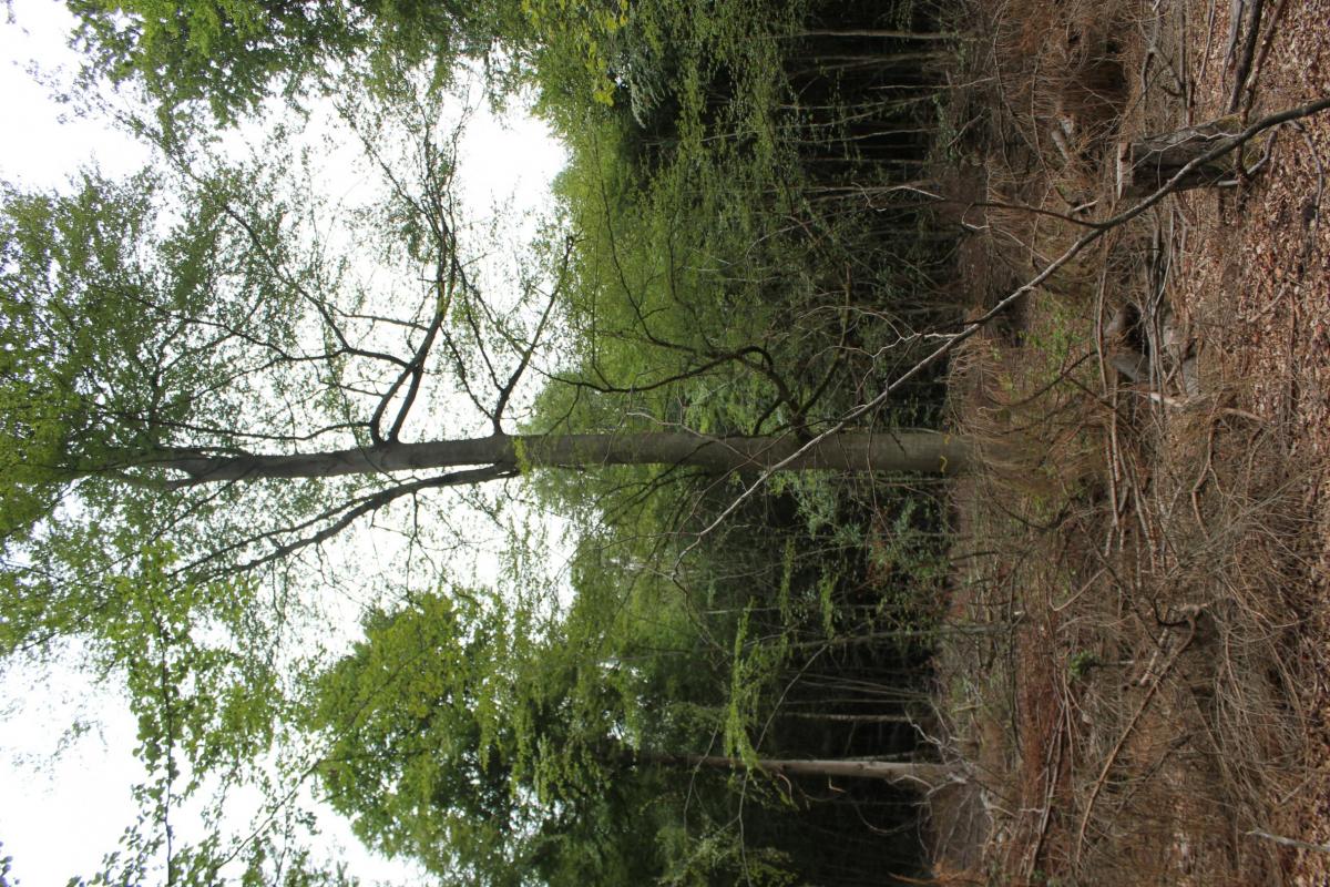 Alter Buchenwald wurde mittels Einschlag mit Harvestereinsatz massiv aufgelichtet und die, teilweise als Biotopbäume markierten, Altbäume freigestellt. Folge: starke Sonneneinstrahlung in den vorher durch Kronenschluss geschützten Wald in den Trockenjahren 2018/2019 mit starker Erwärmung des Waldinnenklimas. Harvesterbewirtschaftung mit zahlreichen Rückeschäden an verbliebenen Bäumen.