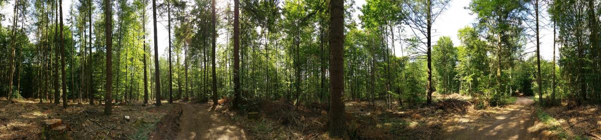 Starke Durchforstung mit dem offensichtlichen Ziel die Douglasie zu fördern