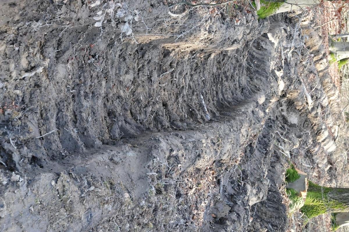 Auf Muschelkalk in PS Windsberg Einschlag mit Vollernter tiefe Rillen von bis zu einem halben Meter
