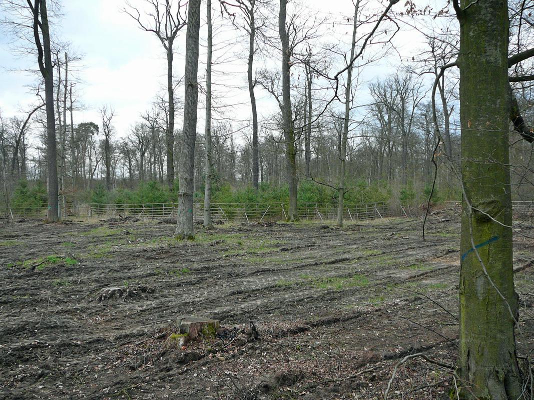 Ein weiterer großer FFH Kahlschlag erfolgte nördlich in derselben Abteilung zum Zweck Errichtung einer "forstwirtschaftlichen Versuchsfläche", mit allen möglichen Fremdbaumarten.
