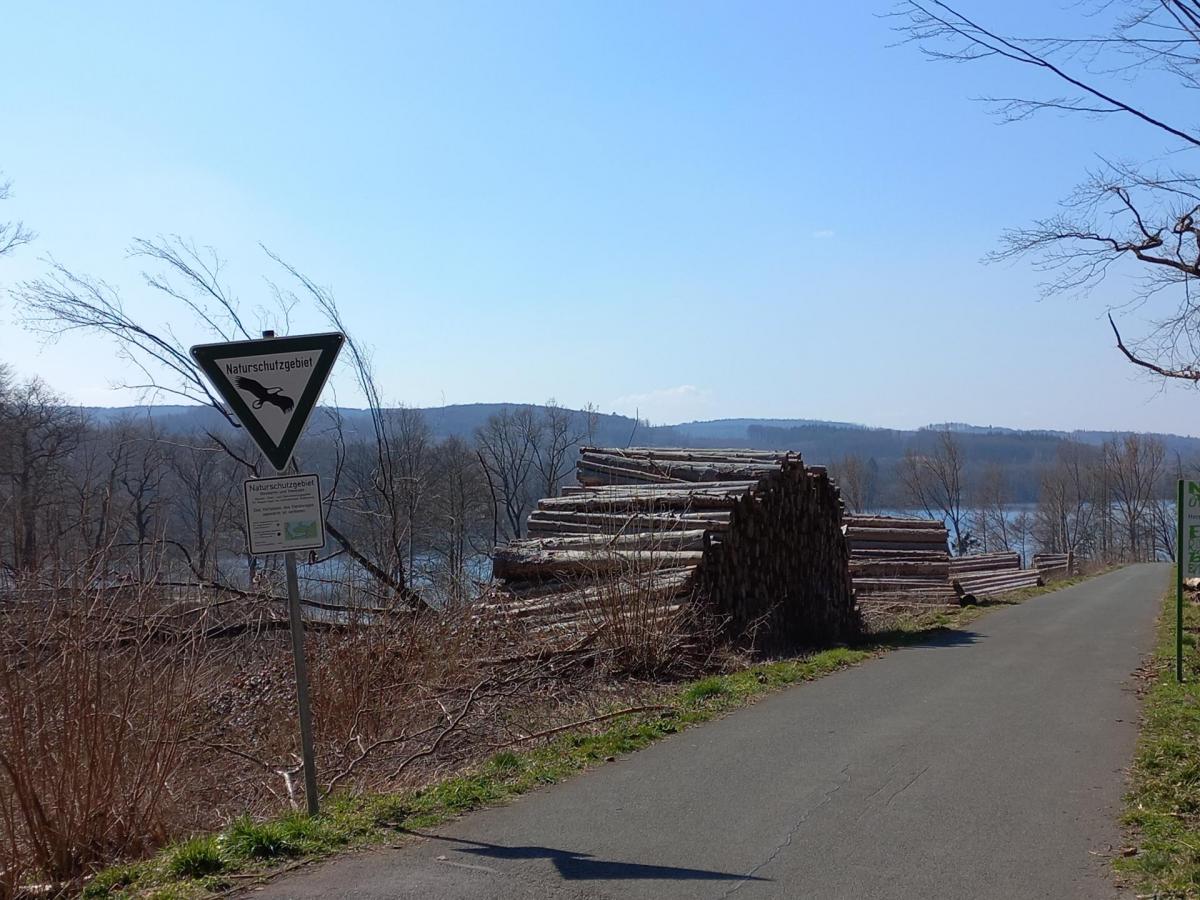 Rund um den Möhnesee existiert ein Radweg. Befährt man diesen, kommt man auf einer Anhöhe zu diesem Bild...Unfassbar, dass die Abholzorgie selbst in Naturschutzgebieten stattfindet. Und Kaminbesitzer können sich im Dunkeln an dem frei herumliegenden Holz bedienen, um den gestiegenen Gaspreisen zu entgegen.