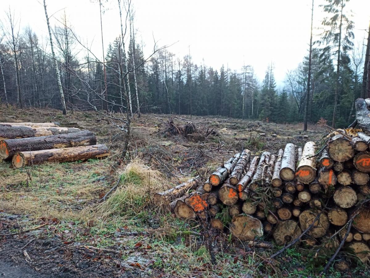 Auf der anderen Seite des Wanderweges geht der Kahlschlag weiter.