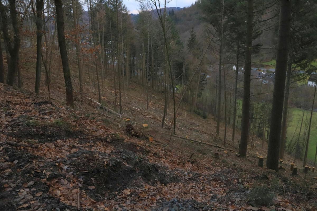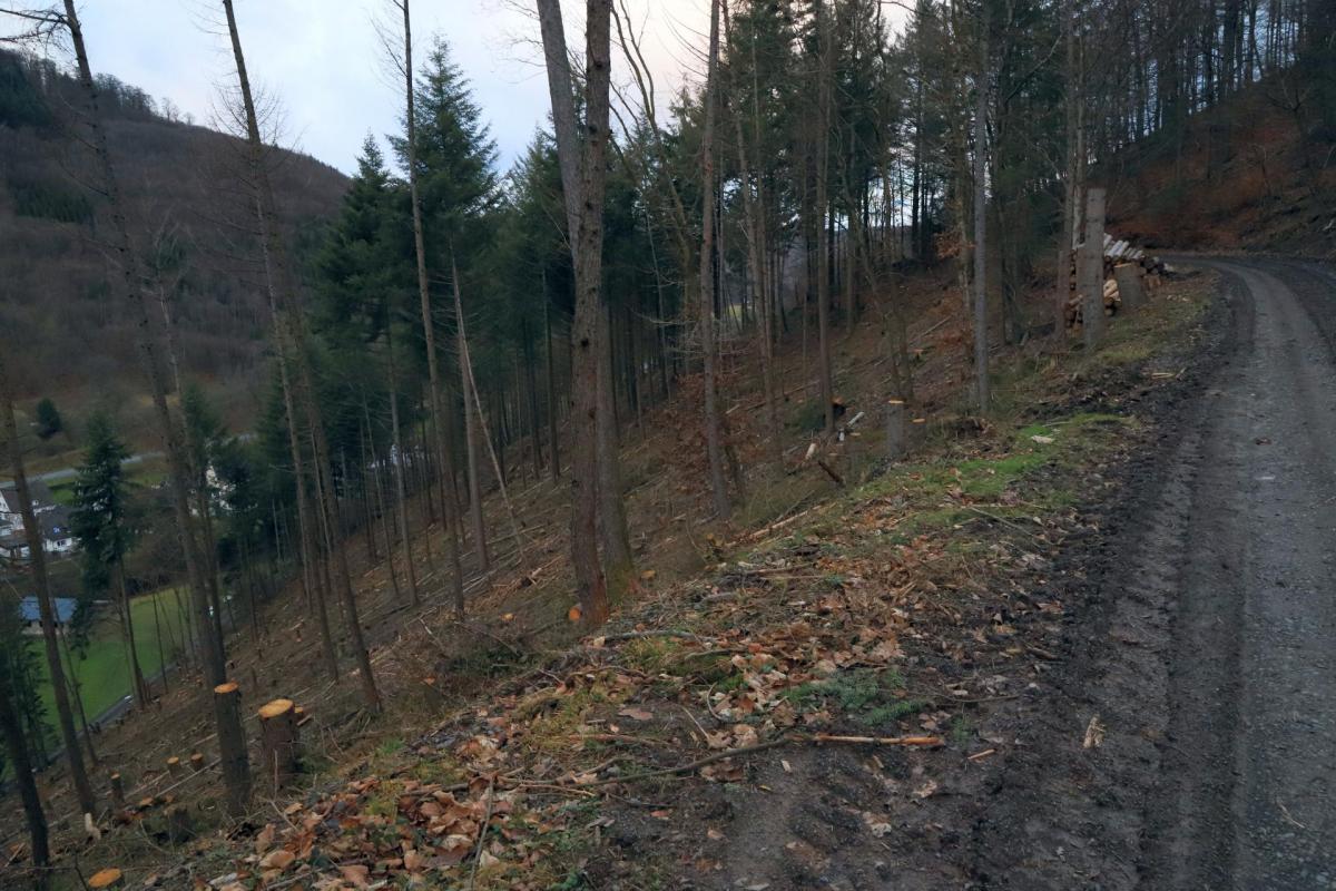 Fällung von Nadelbäumen Hang abwärts S/W "Weibersberg" (516 m) / Bad Laasphe-Nord 19
