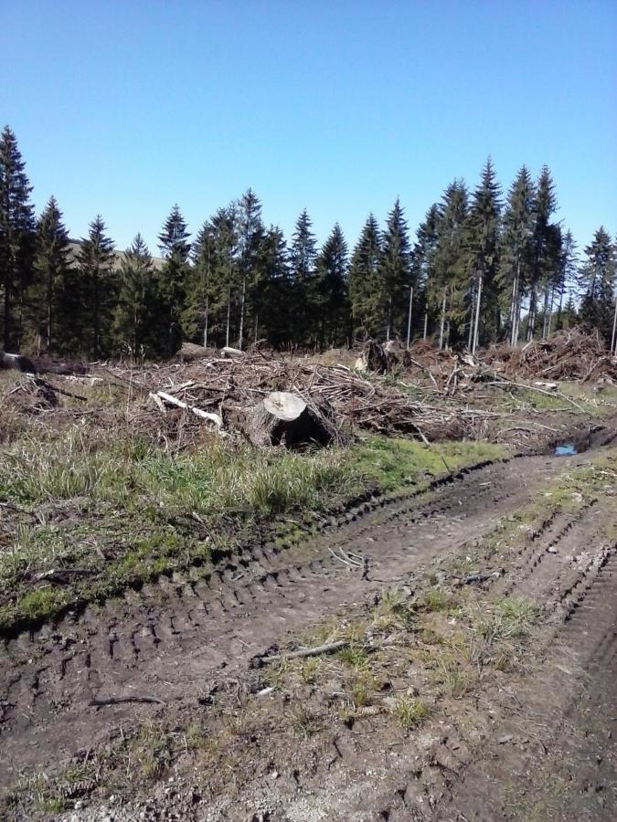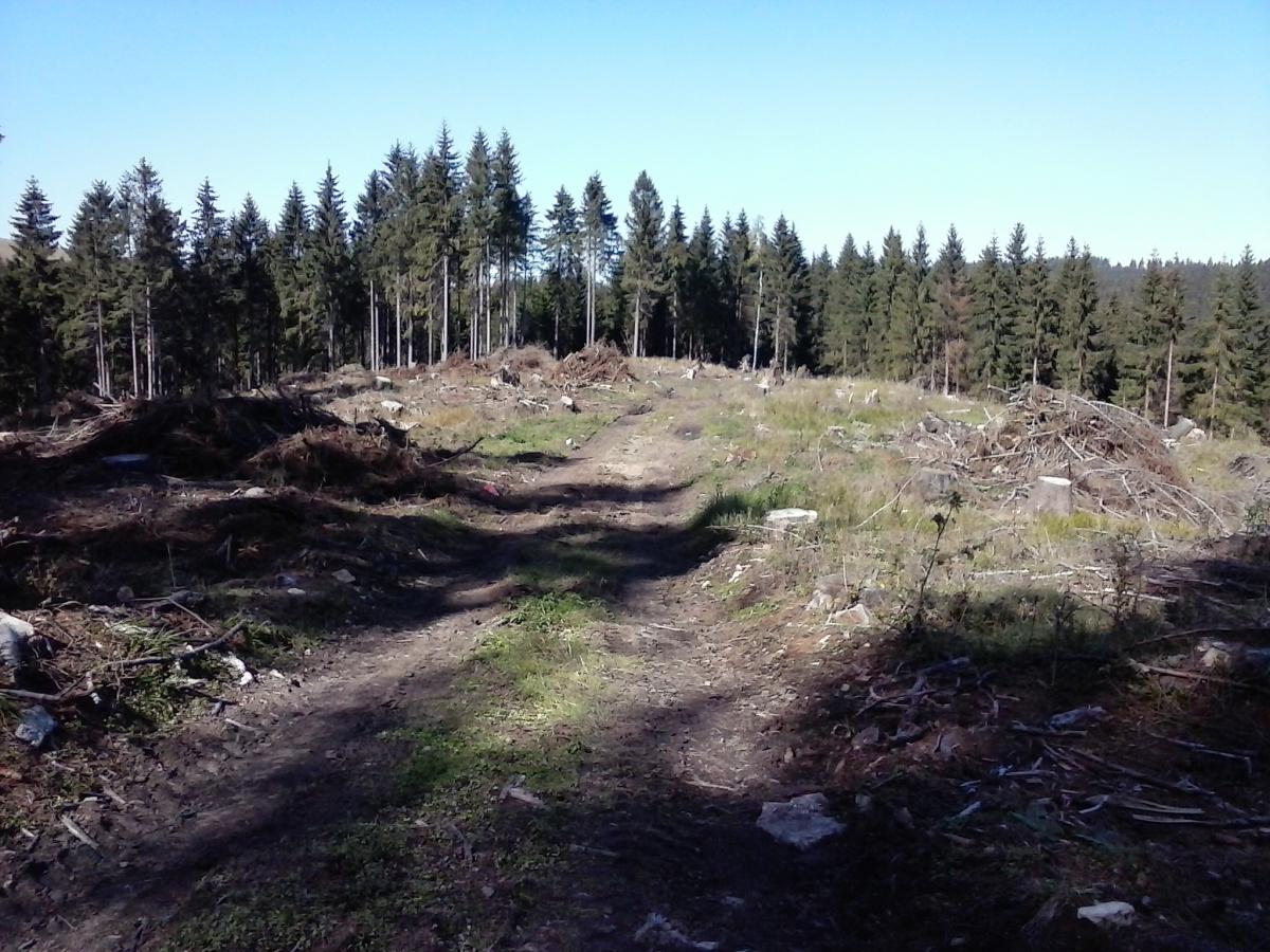 Kahlschlag auf einer Fläche von etwa 100 x 300 m