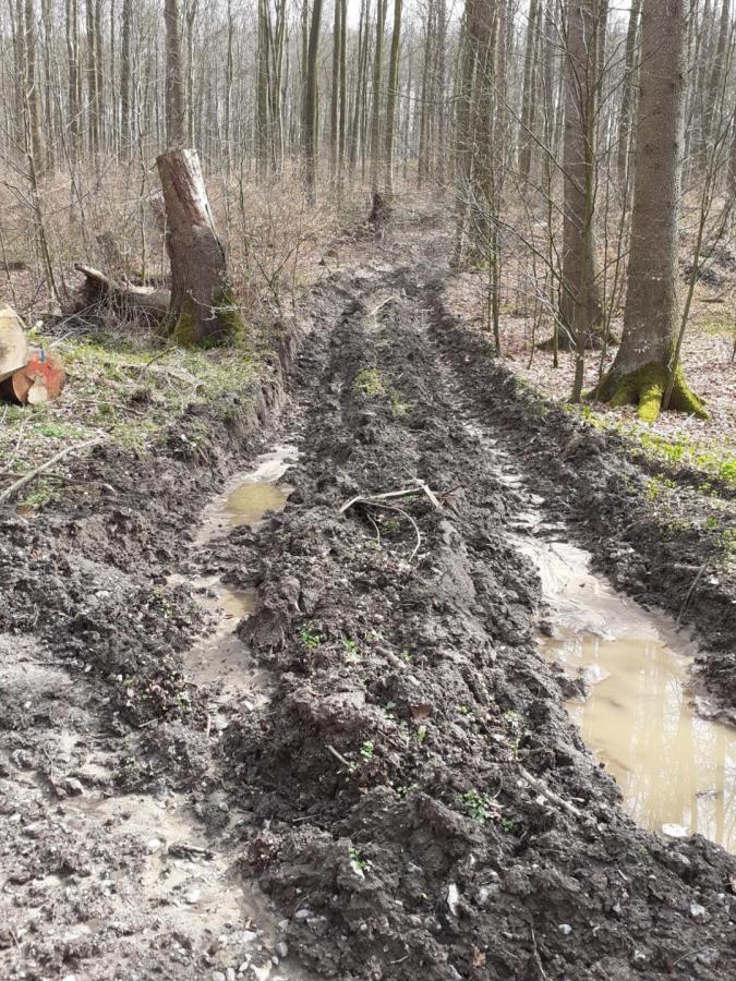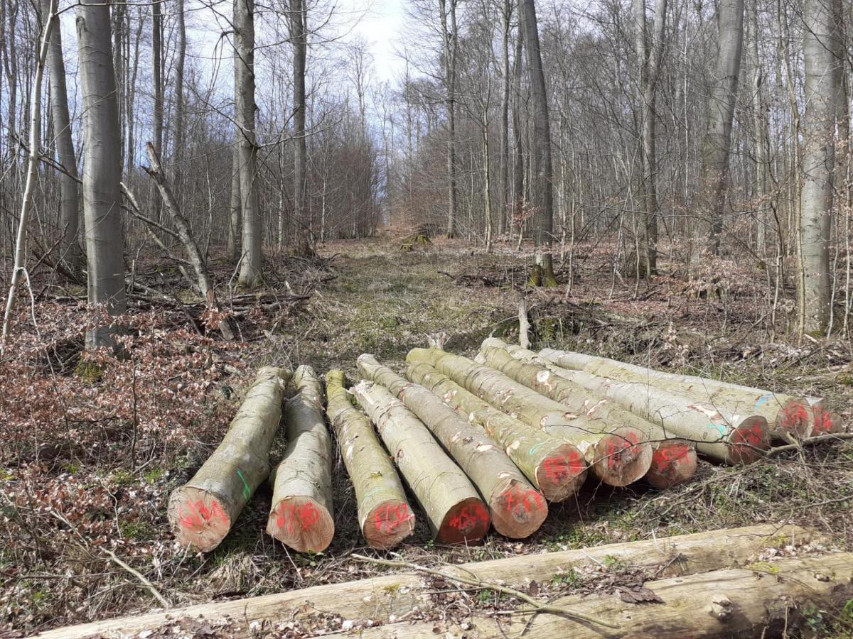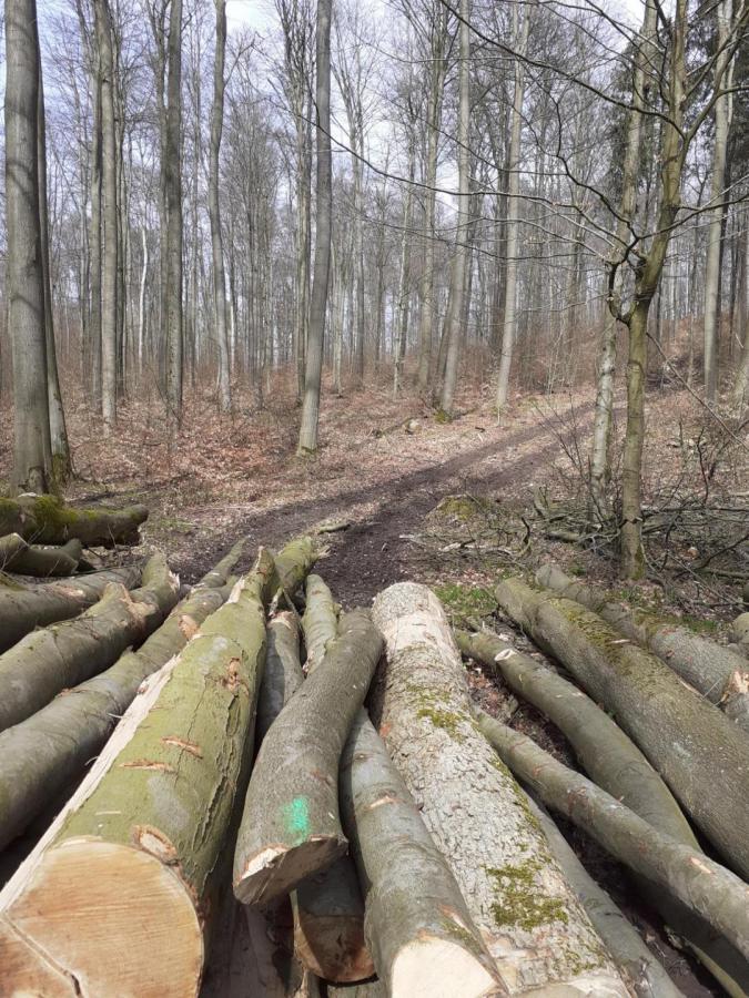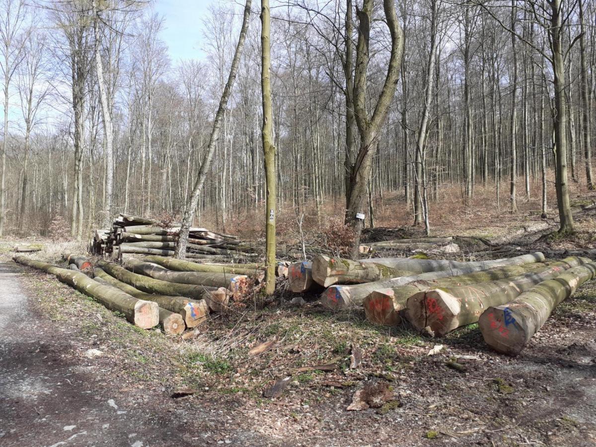 Buchenschlag auf dem Pilgerkreuz. Wanderweg Nr.5 über 830 Buchen auf nicht einmal 2,5km geschlage. Danach haben wir aufgehört zu zählen.