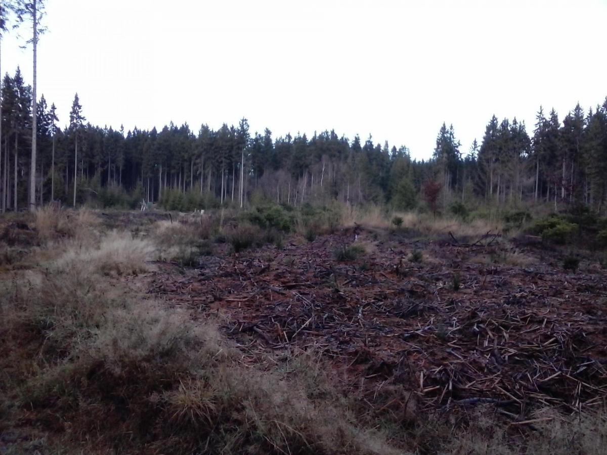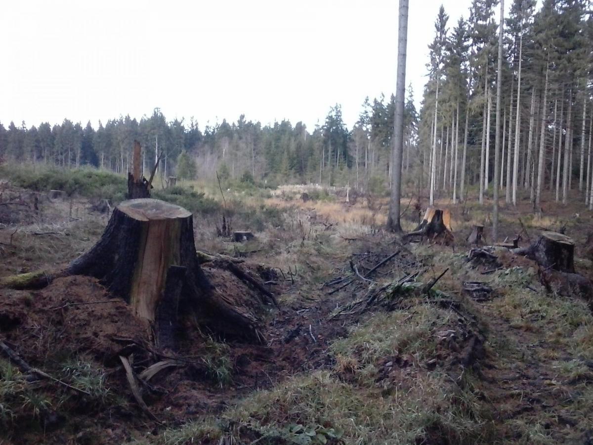 Holzeinschlag im Arlitzwald auf etwa 50 x 150 m (L-förmig) mit Wegeschäden.