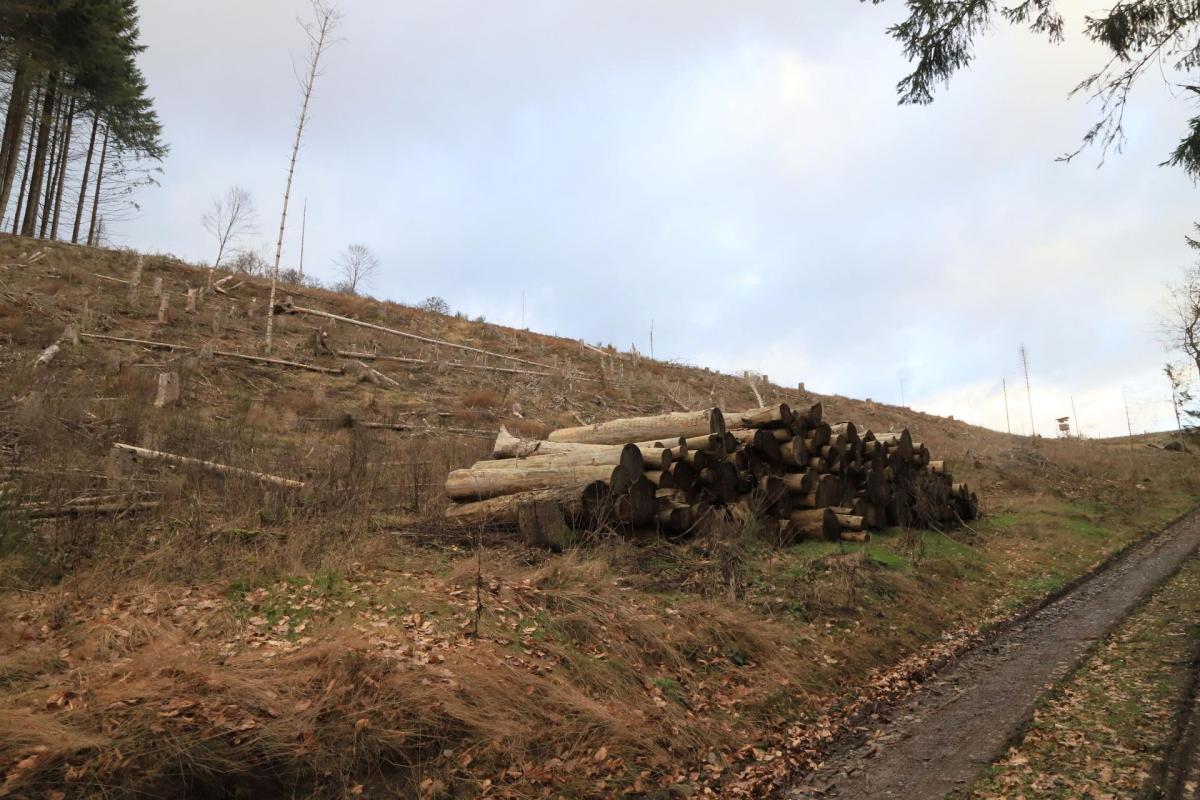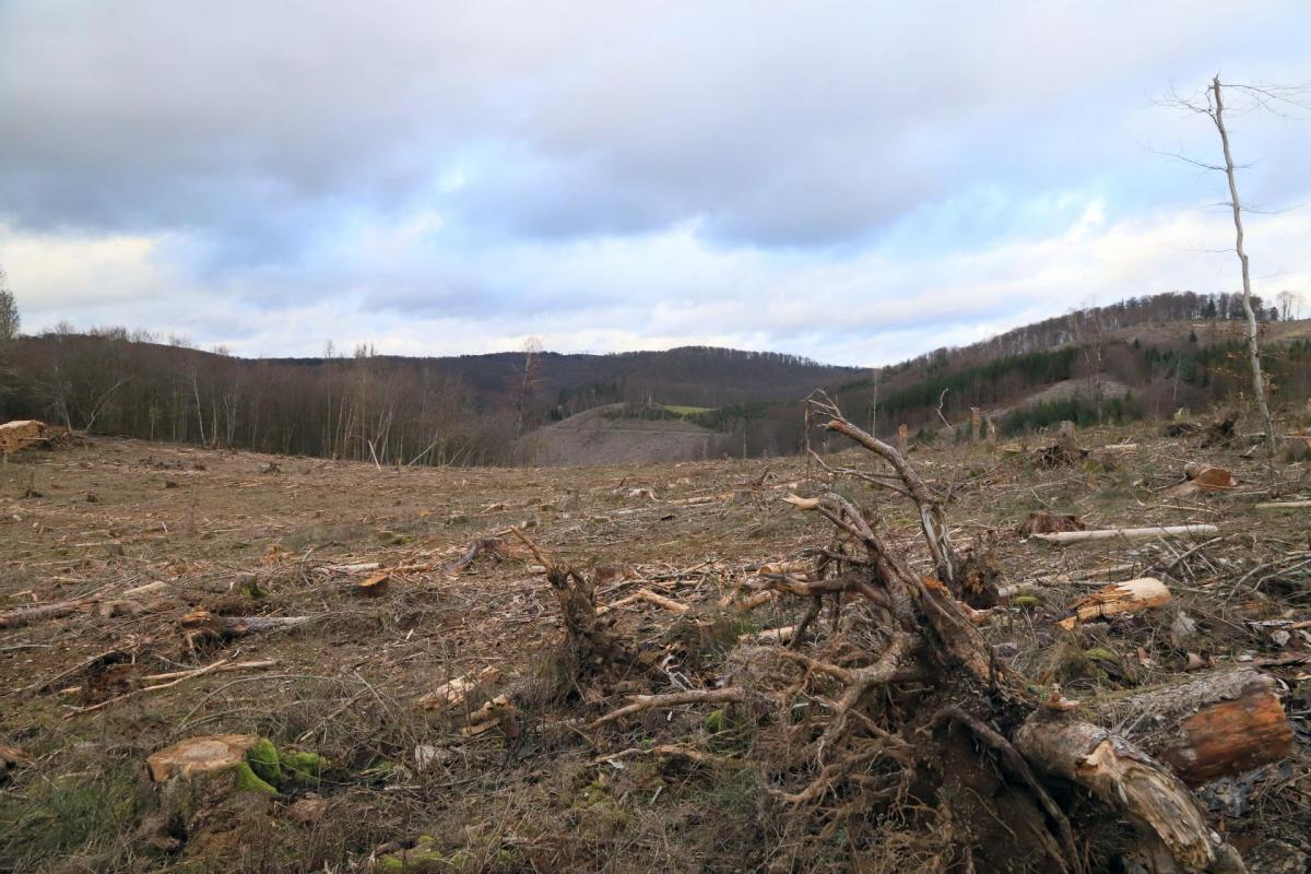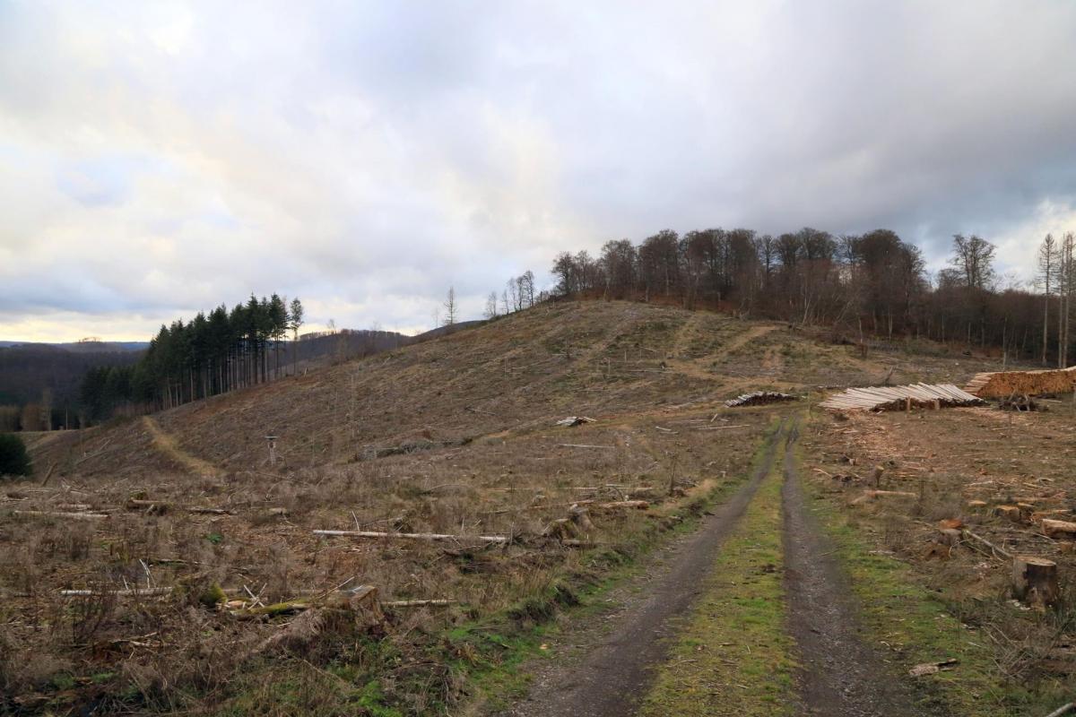 Kahlschläge "Welsbachsboden" und "Aufm Obernberg" auf insgesamt ca. 8 Hektar Fläche.