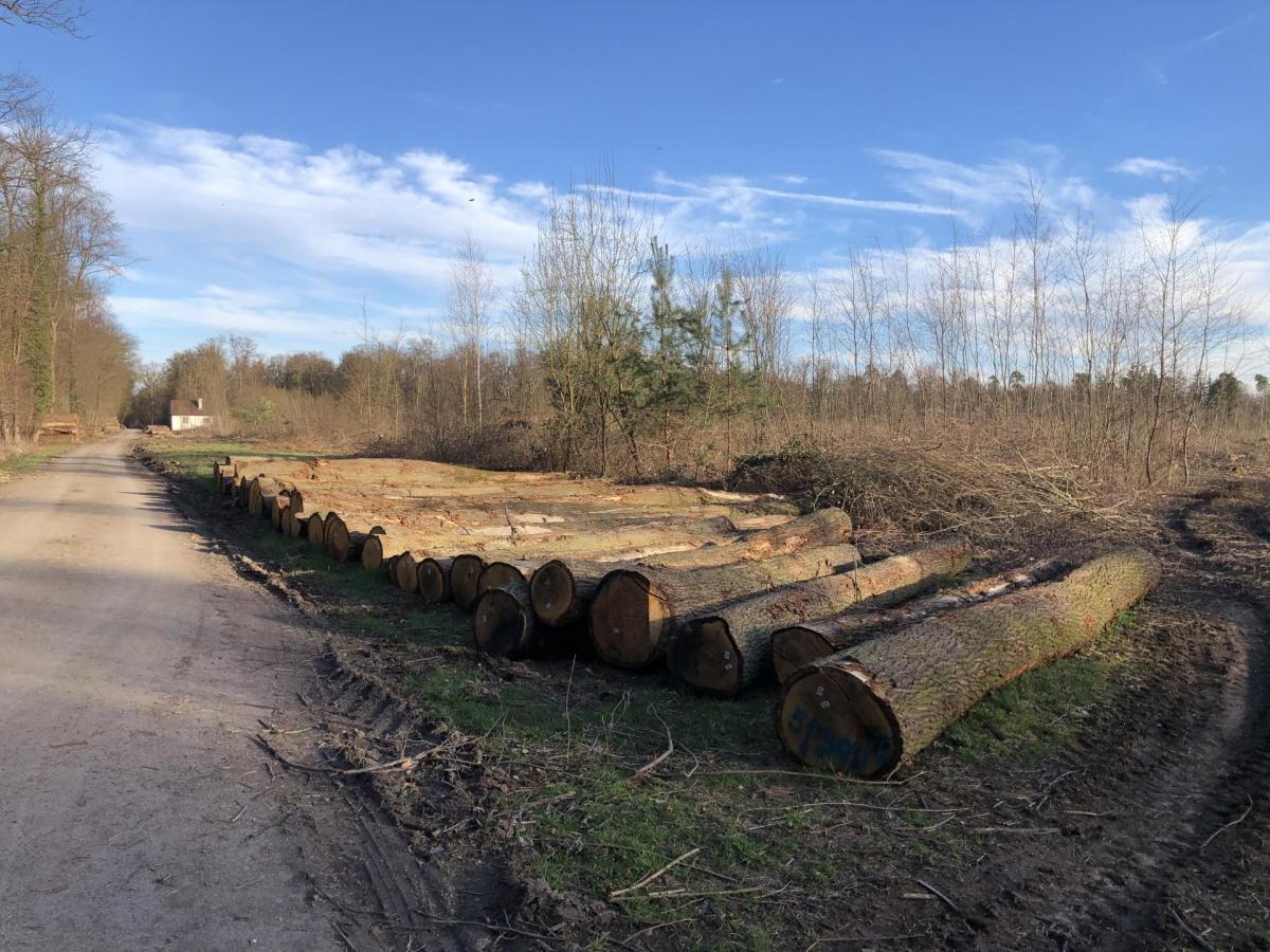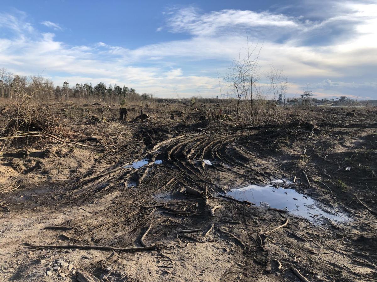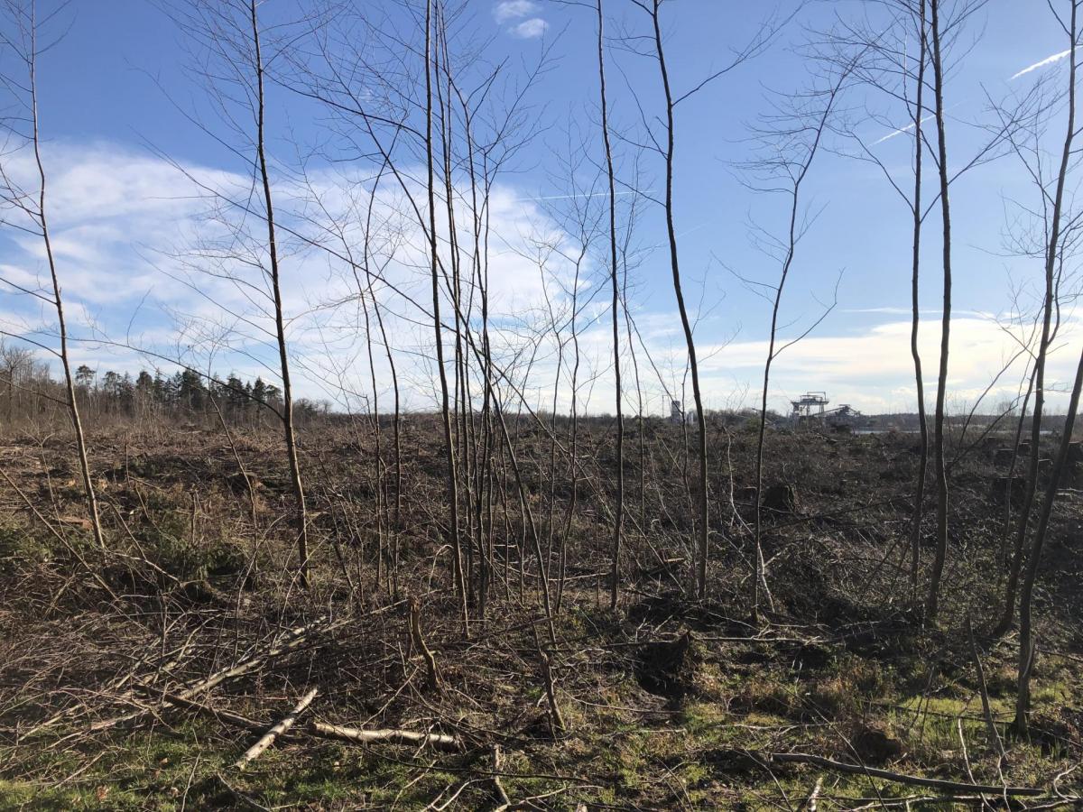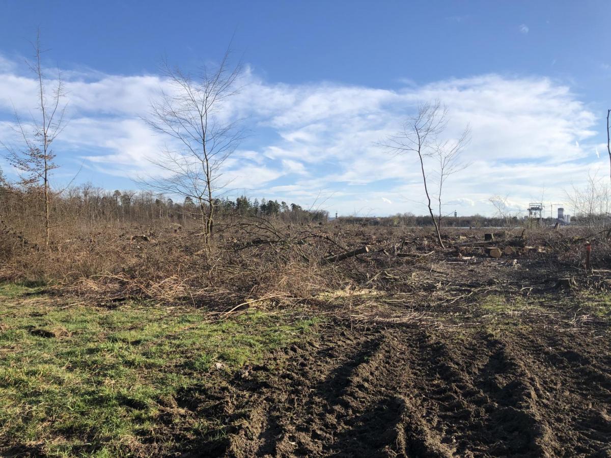Kahlschlag wegen Kieswerk Erweiterung . Die Entwurzelung steht noch an .