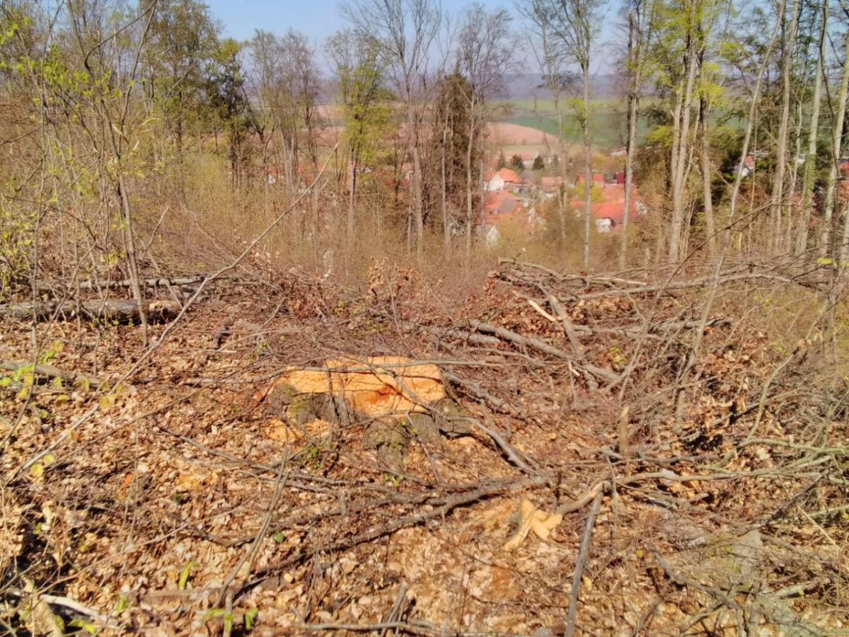 Durch das Thüringer Forstamt Leinefelde im Auftrag der Gemeinde Niederorschel wurden ca. 100 Buchen gefällt und davon ca. 70 gesunde Bäume in einem Wasserschutzgebiet, wo Wasserquellen aufgefangen werden um mehrere Ortschaften mit Wasser zu versorgen.