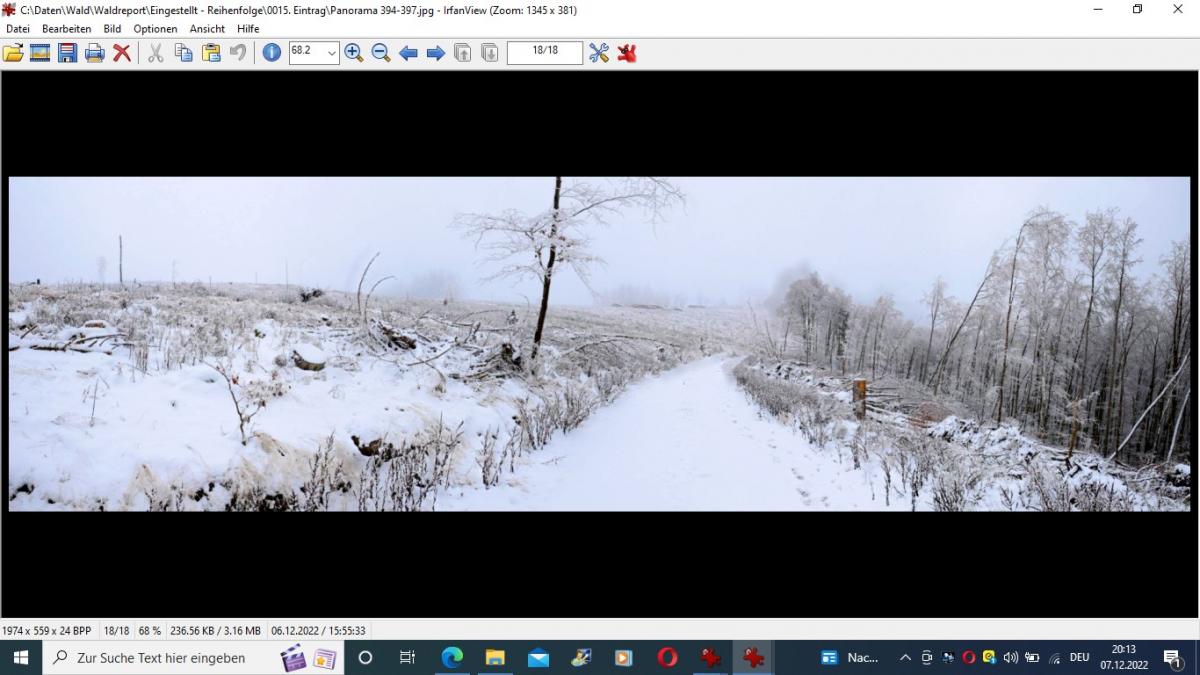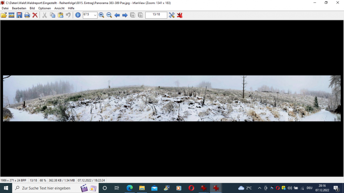 Auf dem Weg von "In der Weidetal" nach "Auf der Neuntel", kurz vor der Wegespinne. Beiderseits des Weges wurde - und wird derzeit - ein erheblicher Kahlschlag durchgeführt von bis zu 10 ha. Angrenzende Flächen in sämtliche Himmelsrichtungen sind dabei noch nicht berücksichtigt und werden noch separat dargestellt.