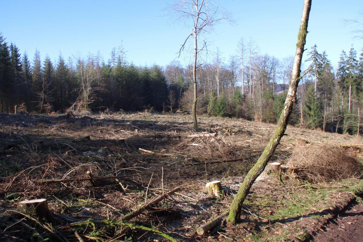 Kahlschlag auf einer Waldfläche von ca. 0,7 Hektar.