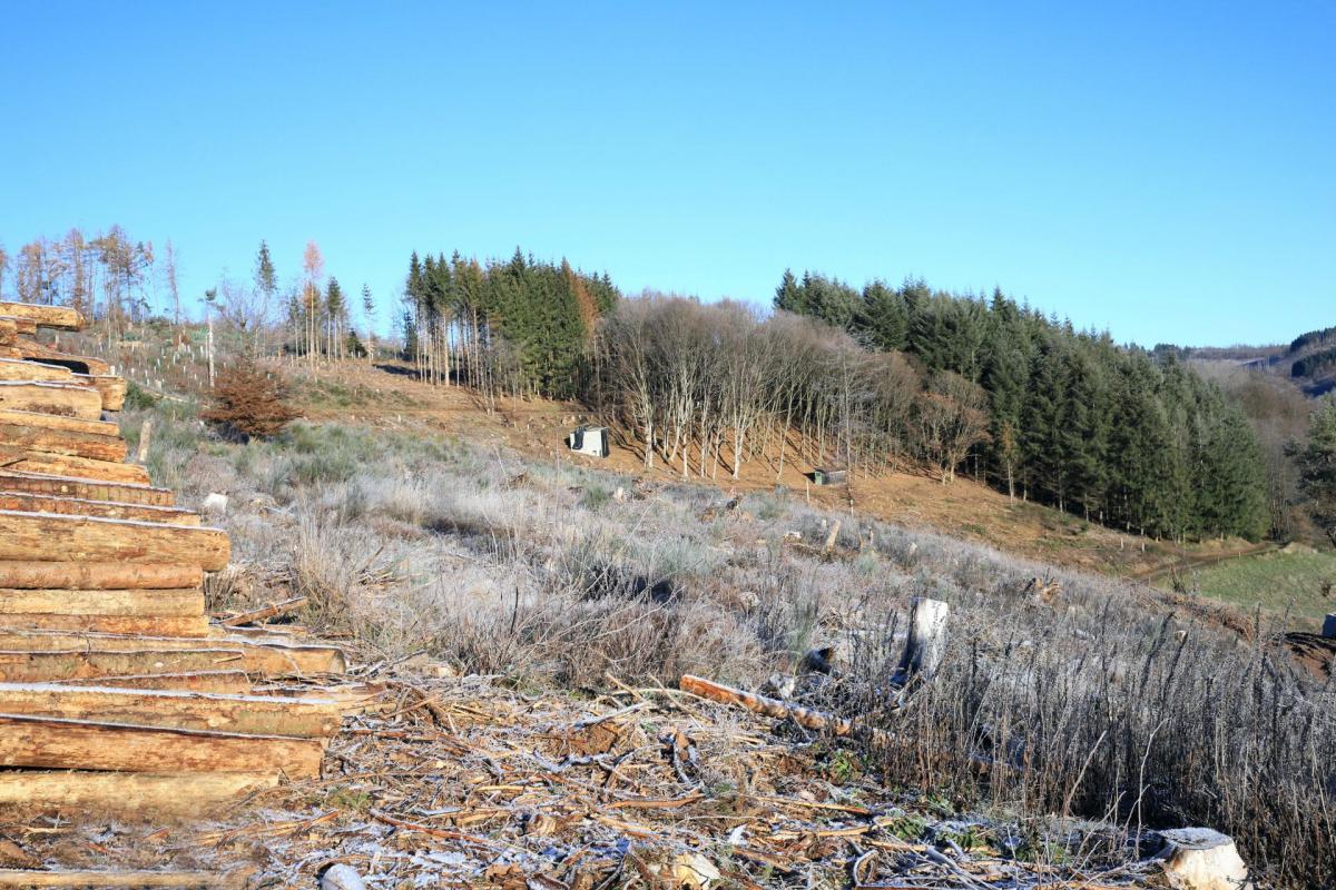 Kahlschlag von ca. 10 Hektar in Richtung "Auf der Gänsewiese" an der L903 zwischen Bad Laasphe und Puderbach.