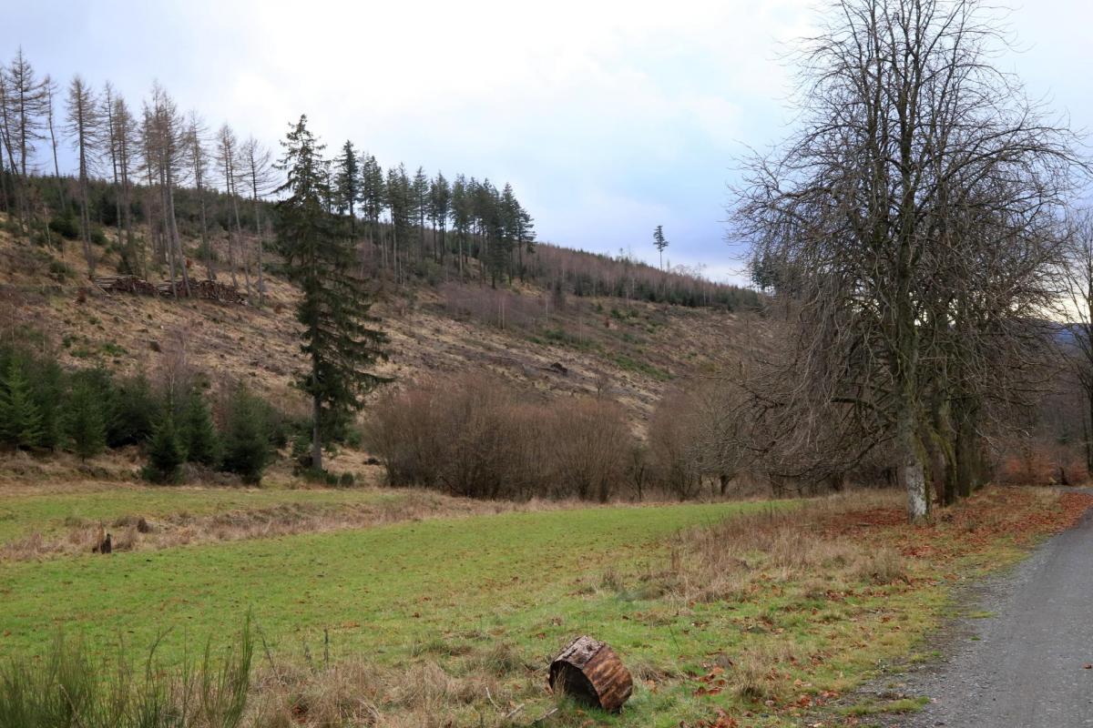 Kahlschlag auf einer Fläche von ca. 6,5 Hektar. Unterhalb "Dreisbachs Seite" und unterhalb "Neesbachs faule Seite", östlich "Obernberg" (551 m).