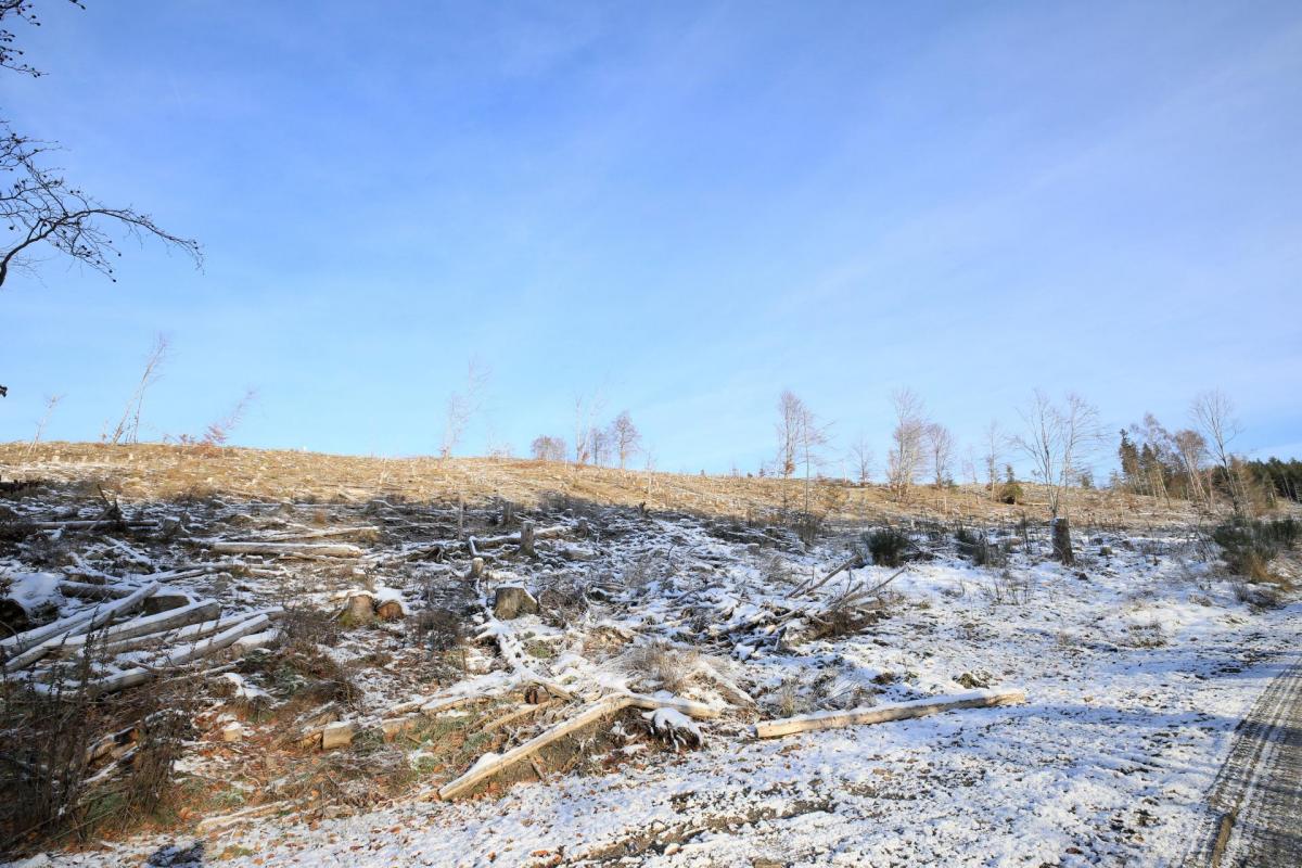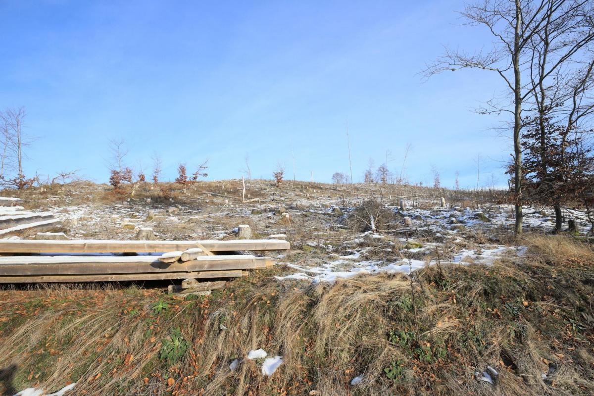 Kahlschlag auf einem insgesamt ca. 10 Hektar großen Waldgebiet.