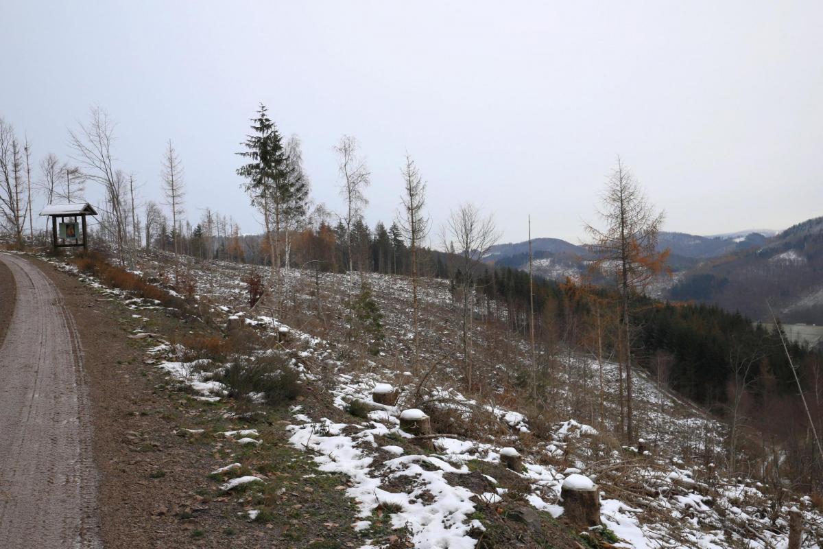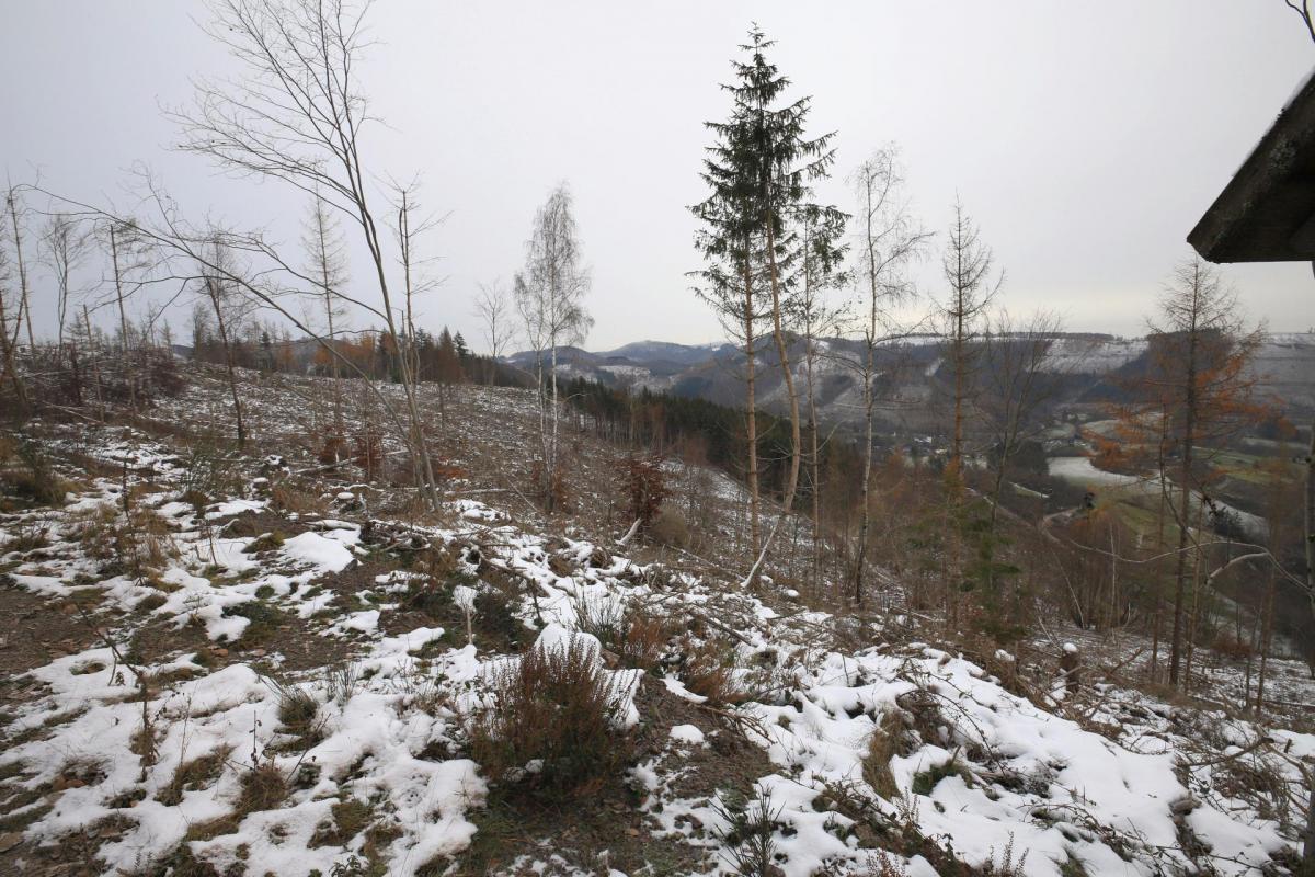 Kahlschlag unterhalb des Hettmannweges im "Hainroth", westlich von Puderbach, von bzw. zur Wegespinne.