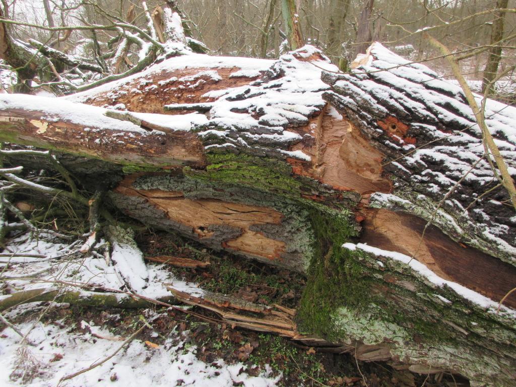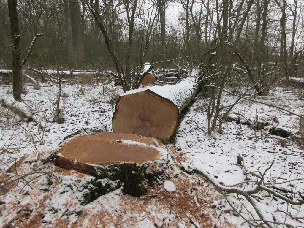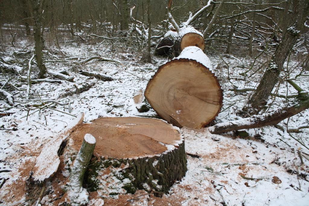 Wenn man großes Glück hat, findet man noch einen übriggelassenen "Alibi-Baum" (Biotopbaum).