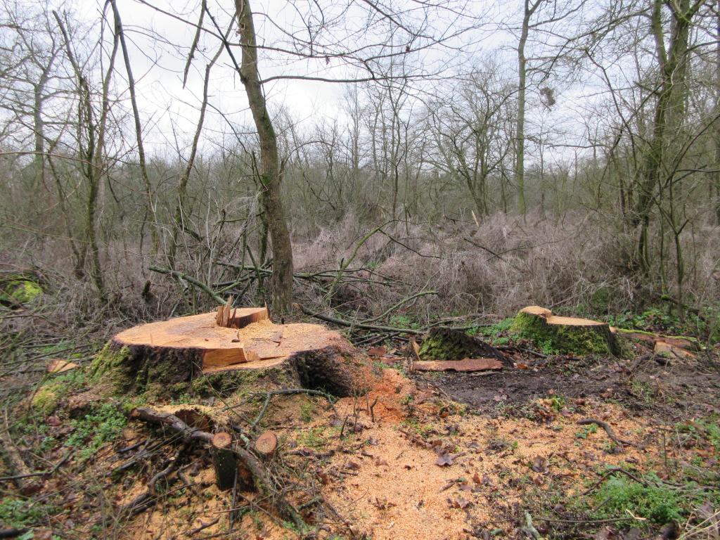 Wenn man großes Glück hat, findet man noch einen übriggelassenen "Alibi-Baum" (Biotopbaum).