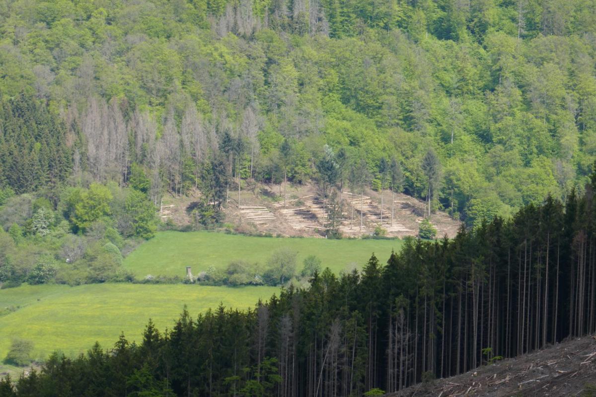 Kahlschlag auf ca. 0,5 ha zwischen "Mittlere Stein" und "Silbergsrücken". Das Foto entstand bereits am 31.5.2021.
