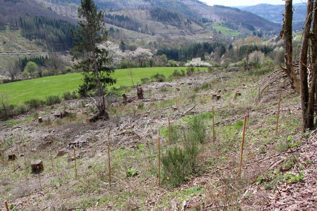 Kahlschlag nördlich Puderbach - vor "Mittlere Stein" / Aufforstung mit Nadelbäumen