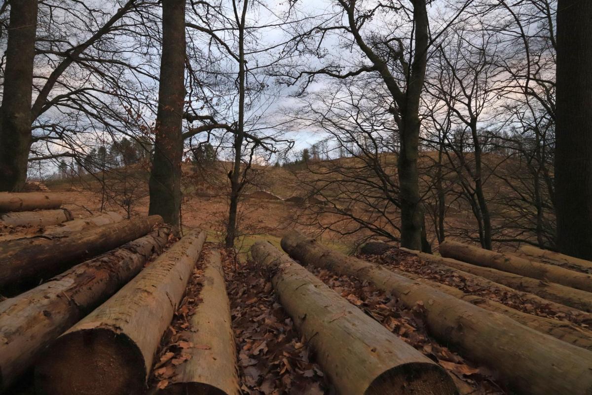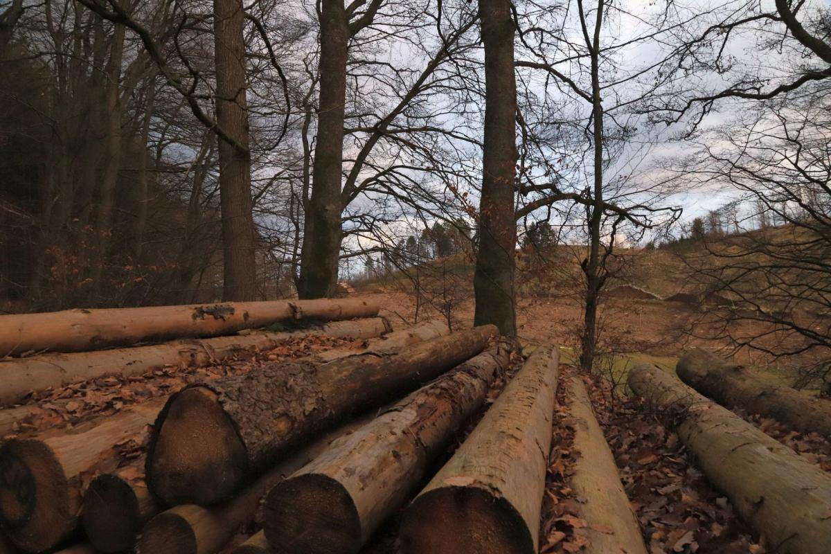 Kahlschlag auf einer Fläche von ca. 2,5 Hektar, hinter und oberhalb einer Wildwiese, östlich von "Aufm Fangsboden".