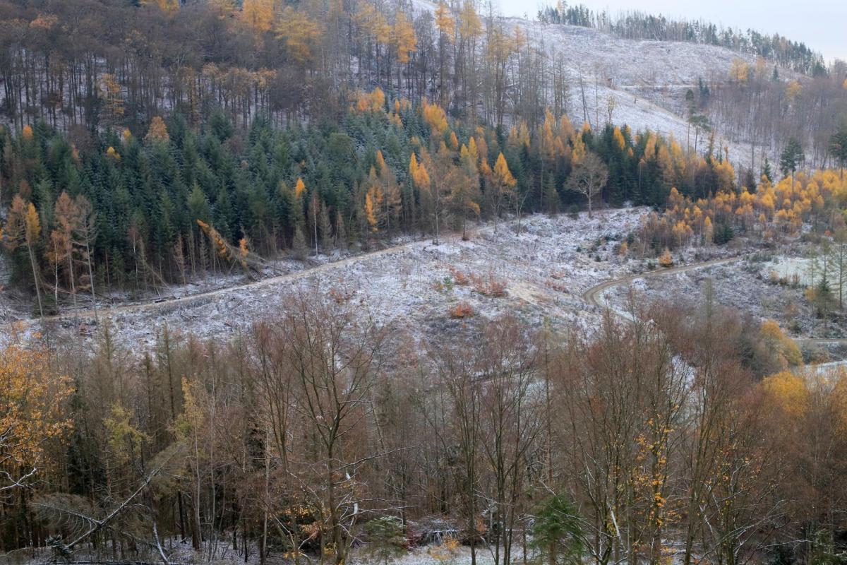 Kahlschlag auf einer Fläche von ca. 1,6 ha, wovon ca. 0,3 ha bereits als Ökokonto-Maßnahme ausgewiesen ist.